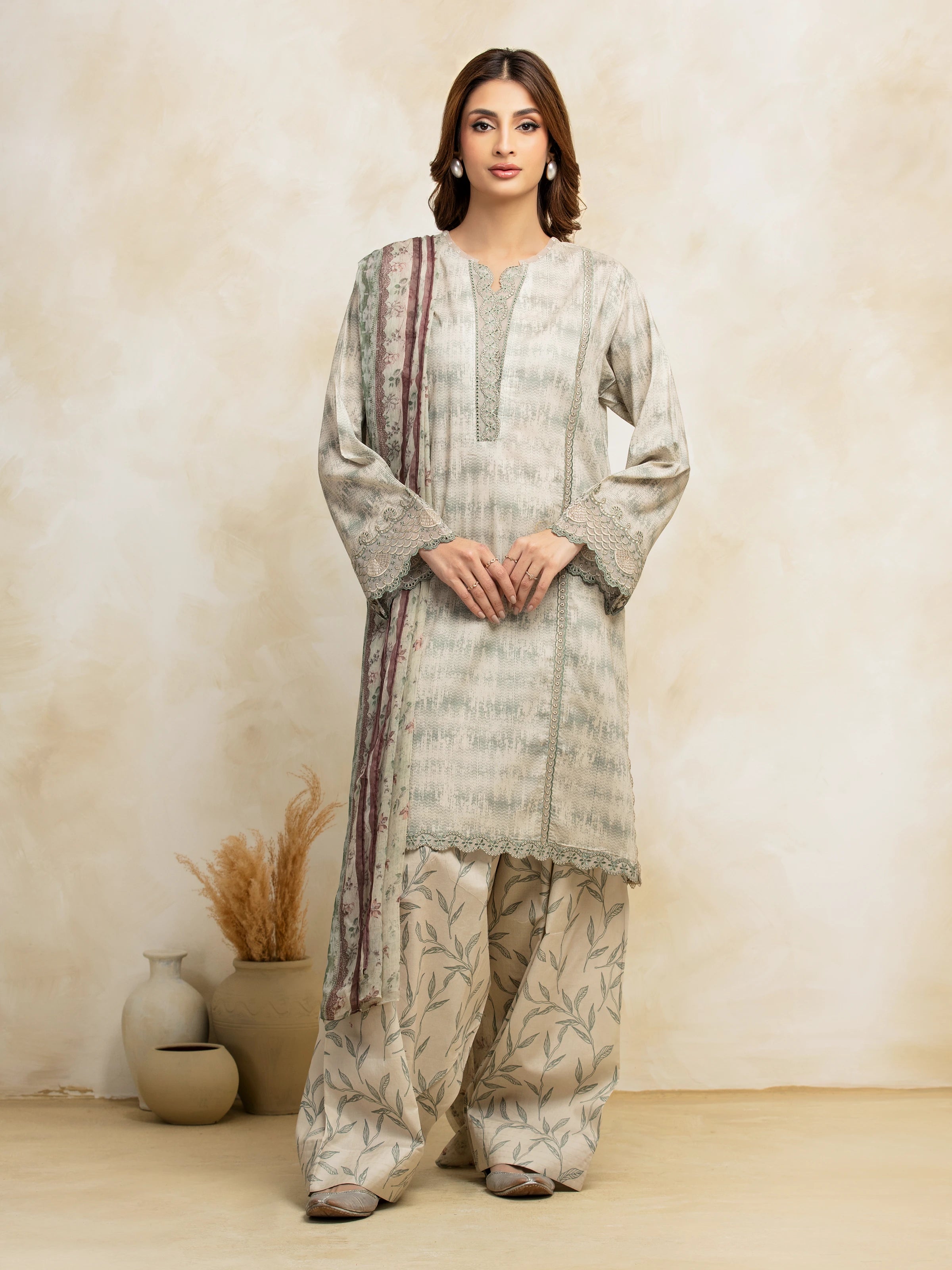 edenrobe Premium Embroidered Lawn Unstitched 3Pc Suit EWU5V1-31092