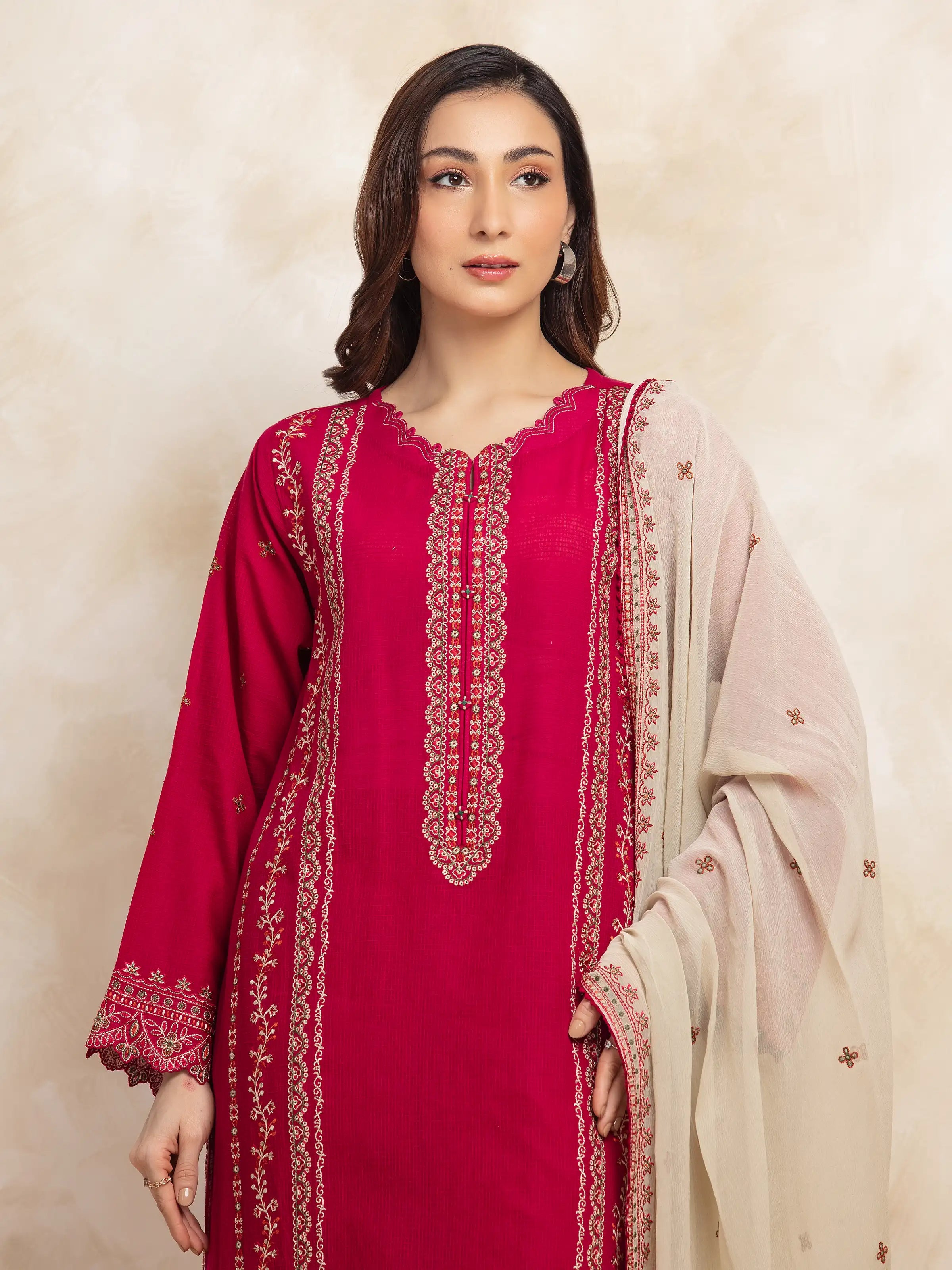 edenrobe Premium Festive Unstitched Slub Lawn 3Pc Suit EWU5V1-31238