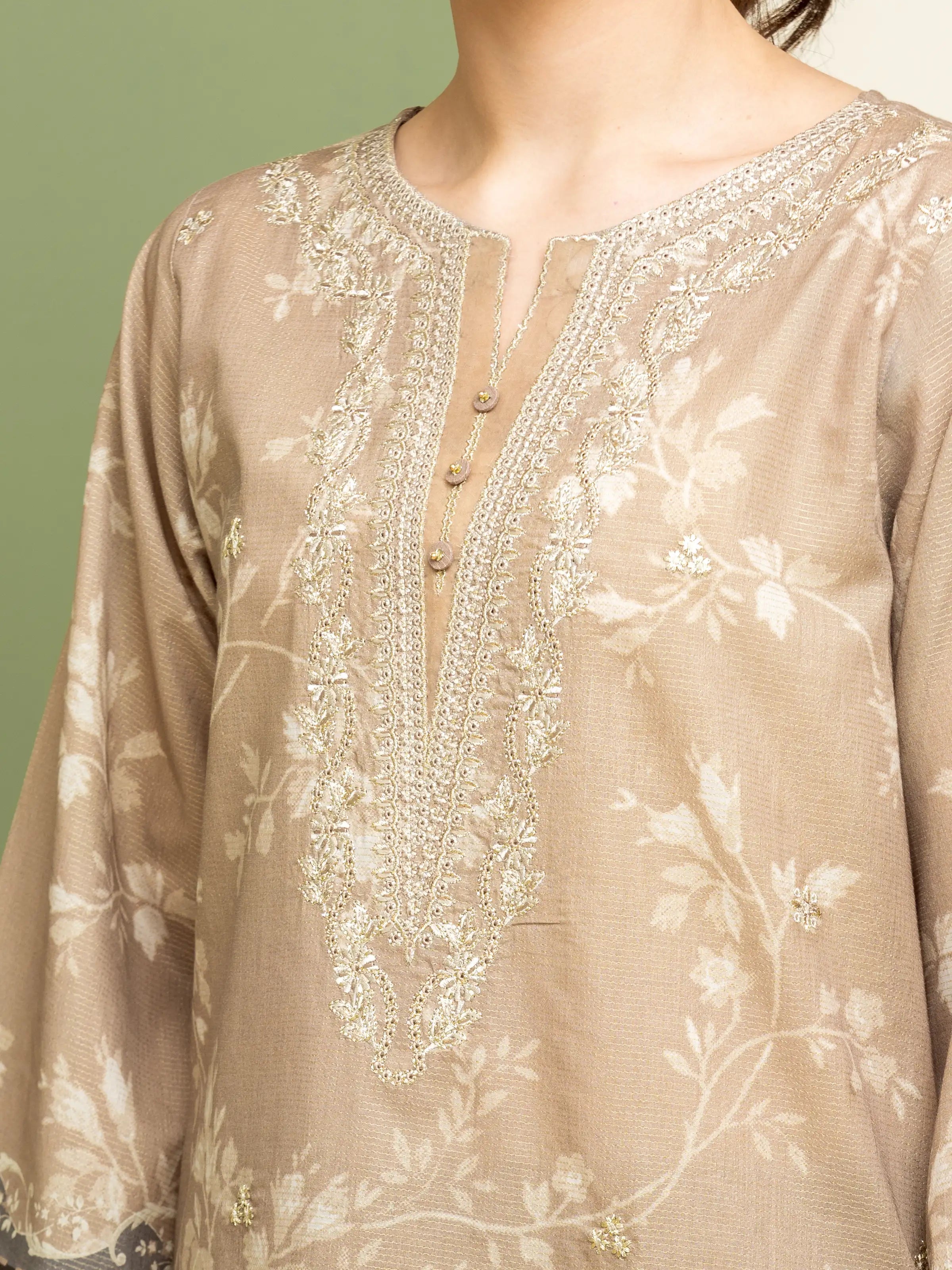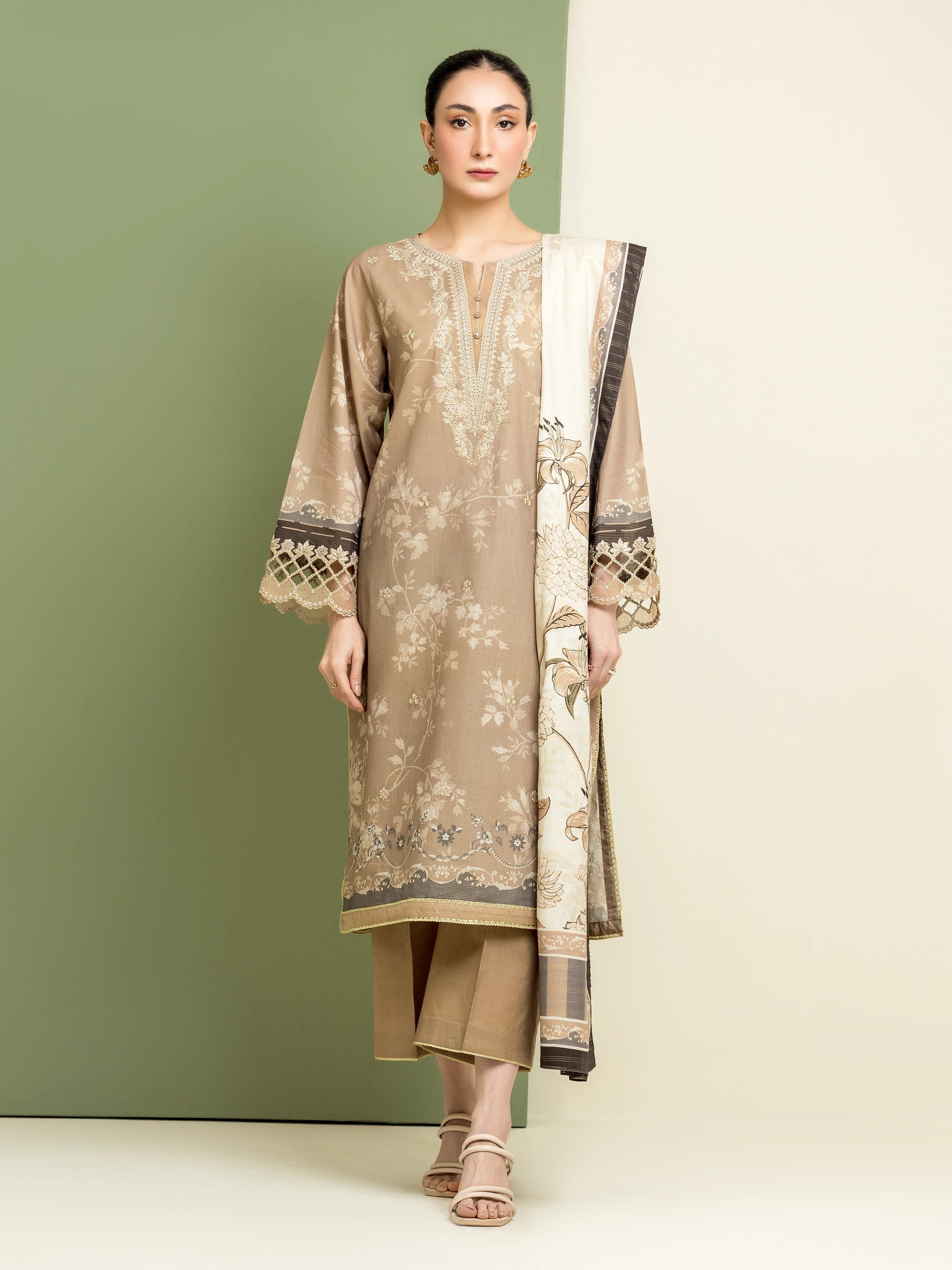 edenrobe Premium Festive Unstitched Zari Lawn 3Pc Suit EWU5V1-31202