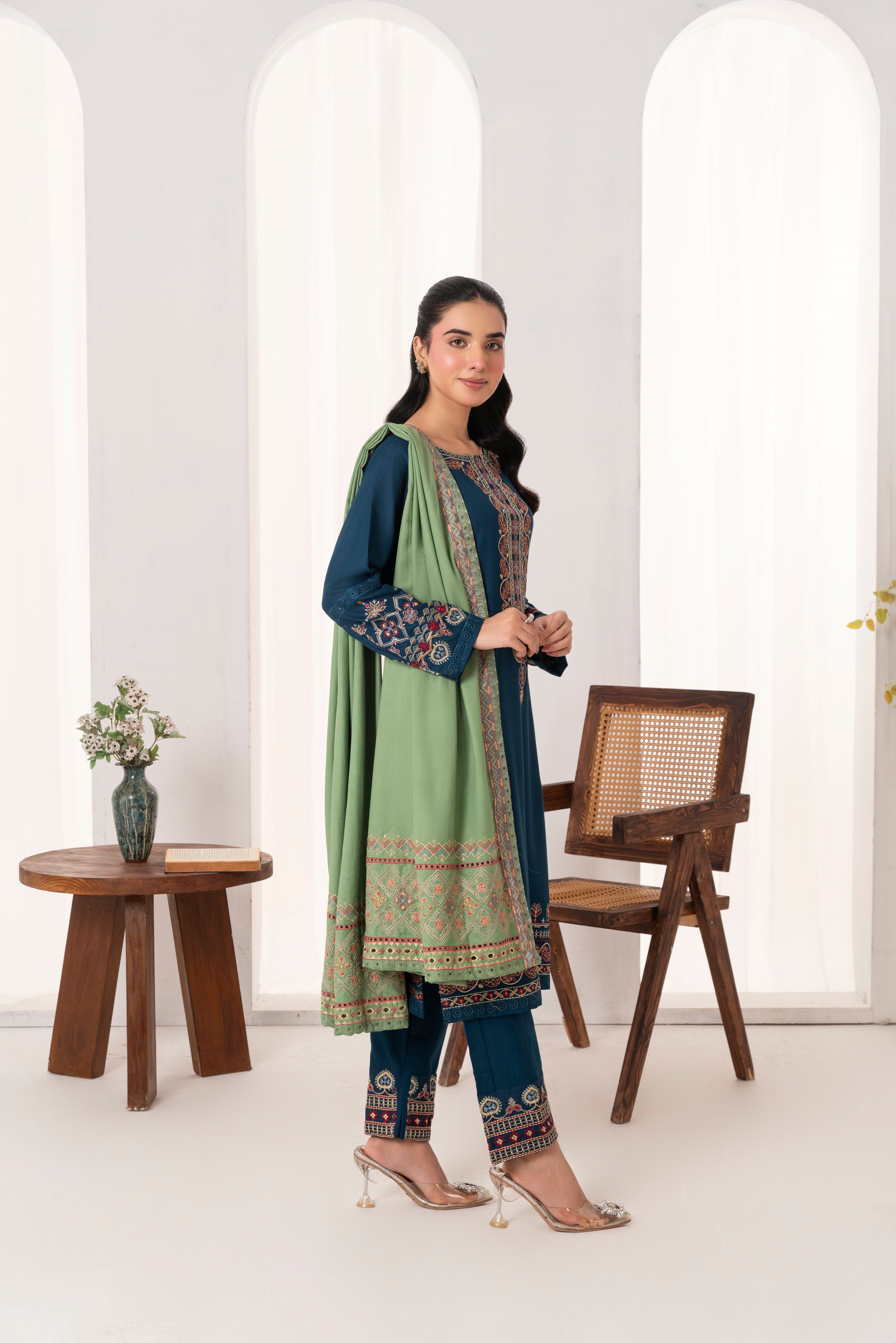 • Fully Embroidered Dhanak Shirt: 3.1 yards