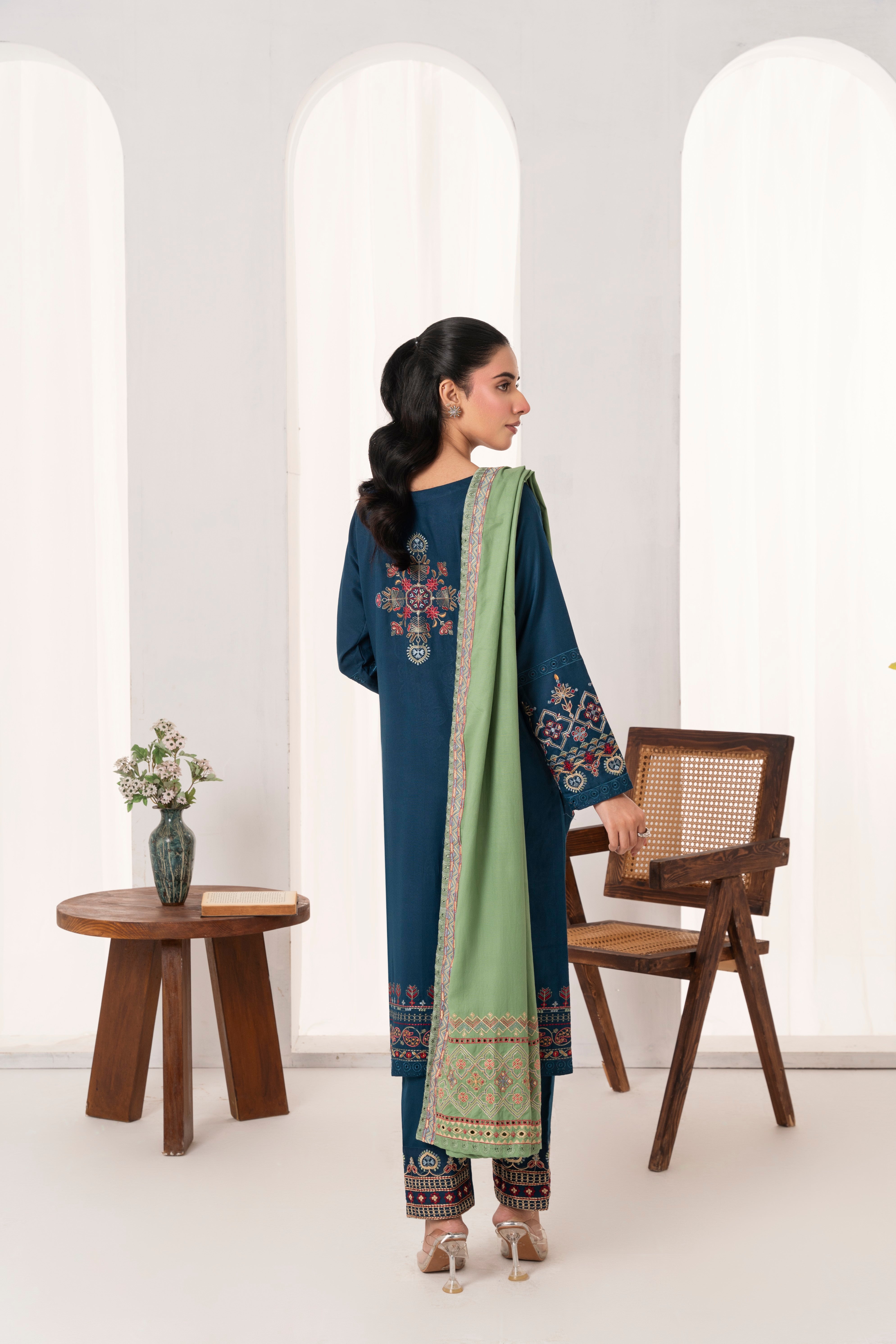 Feathers Fully Embroidered Dhanak Unstitched 3Pc Suit SNOVEL-FT547
