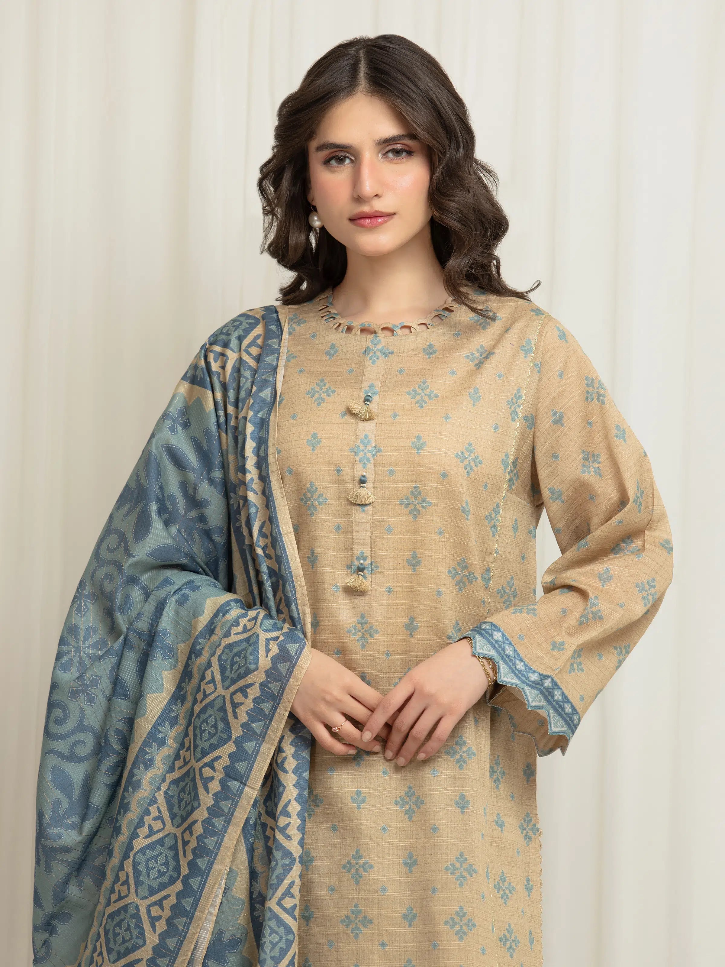 edenrobe Merak Printed Zari Lawn Unstitched 3Pc Suit EWU6M6-030