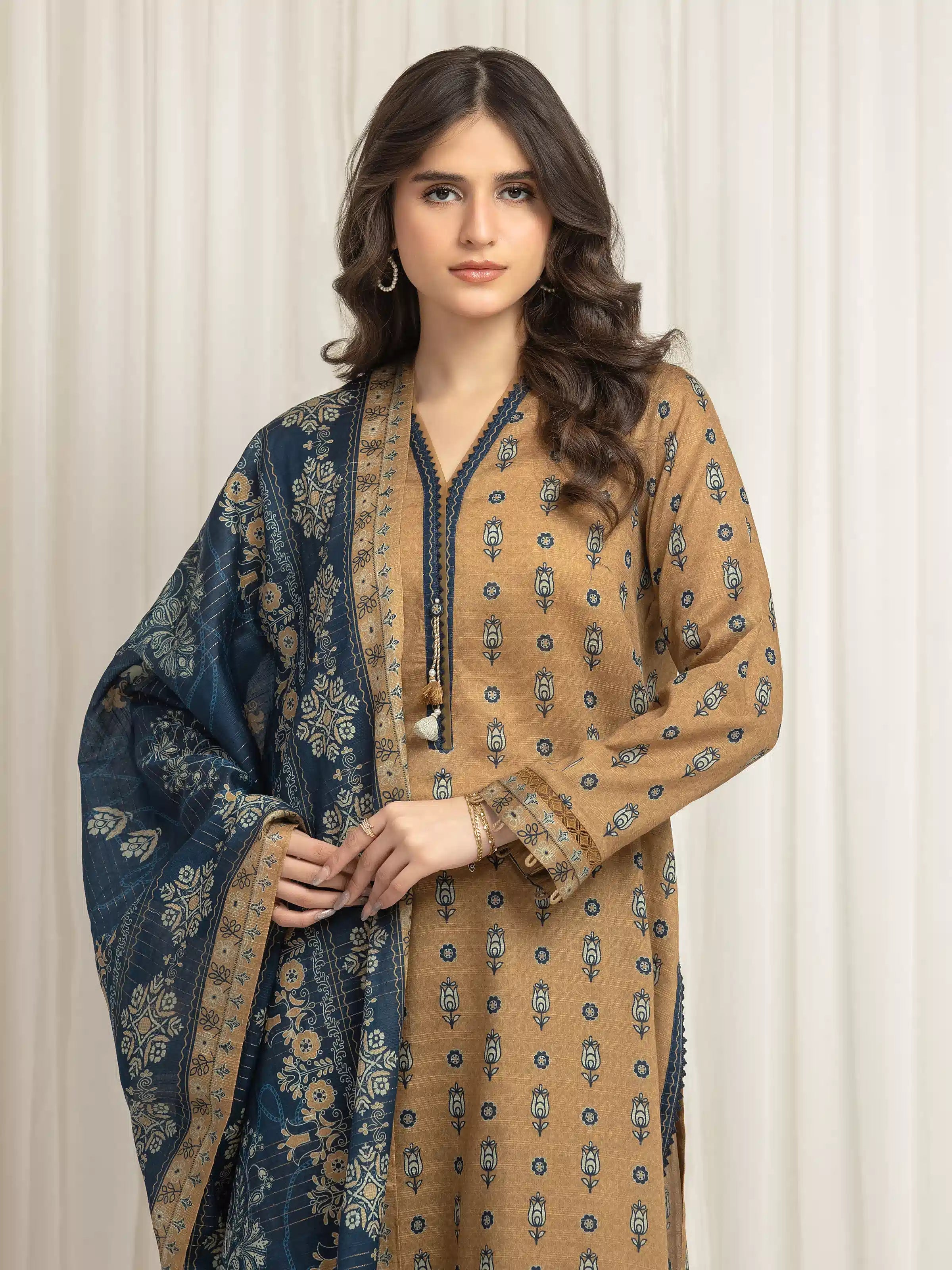 edenrobe Merak Printed Zari Lawn Unstitched 3Pc Suit EWU6M6-032