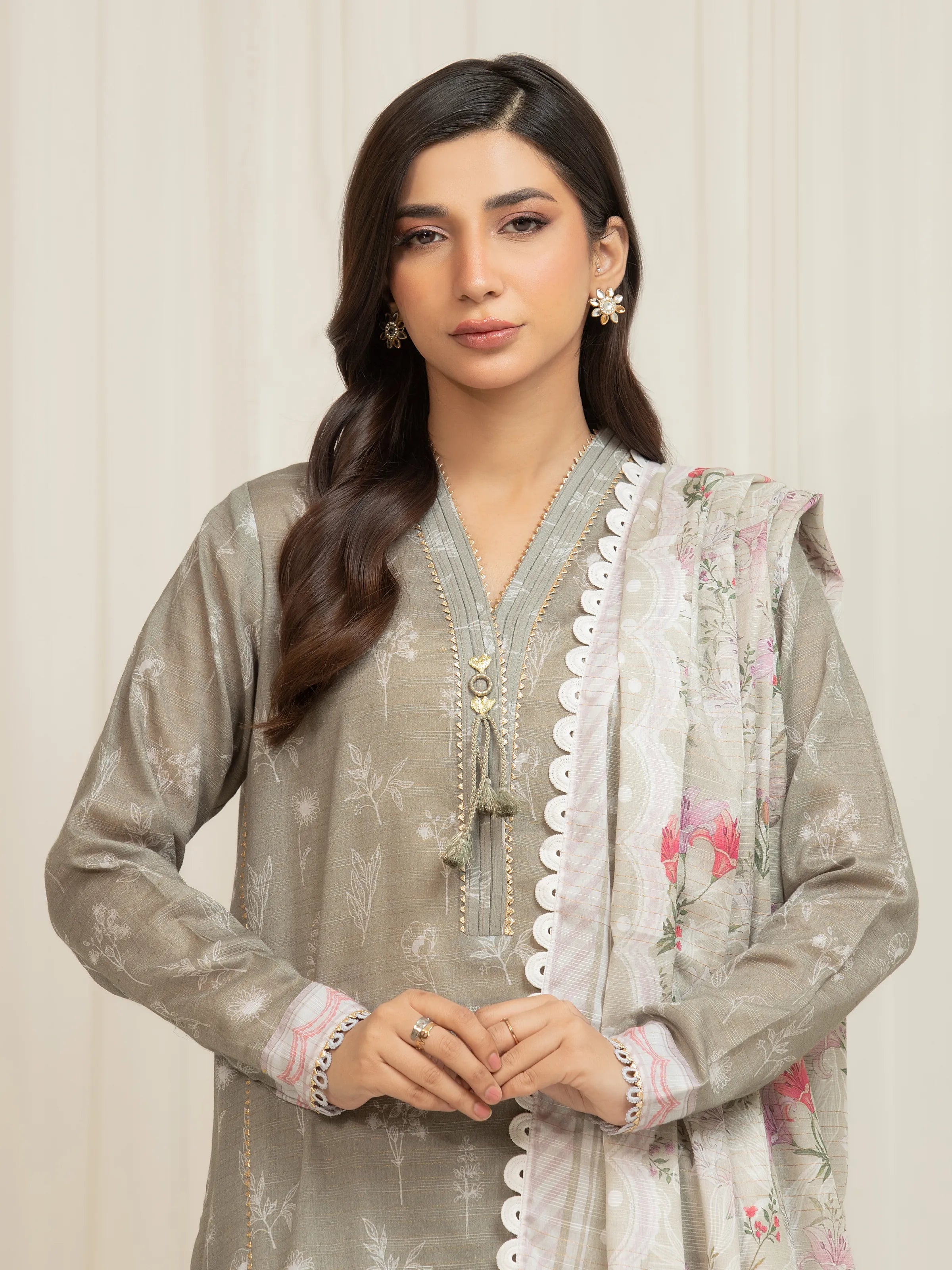 edenrobe Merak Printed Zari Lawn Unstitched 3Pc Suit EWU6M6-040