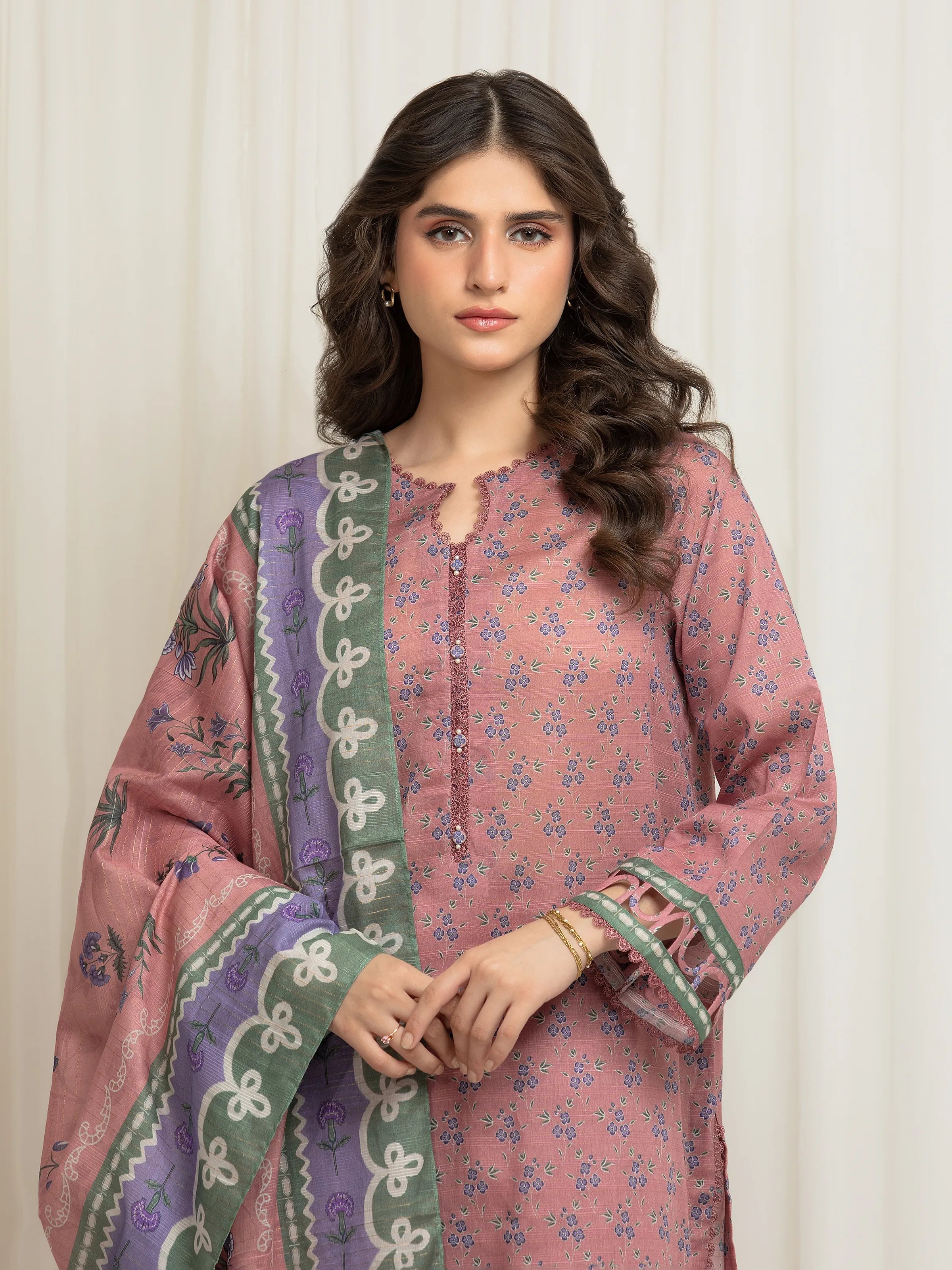 edenrobe Merak Printed Zari Lawn Unstitched 3Pc Suit EWU6M6-041
