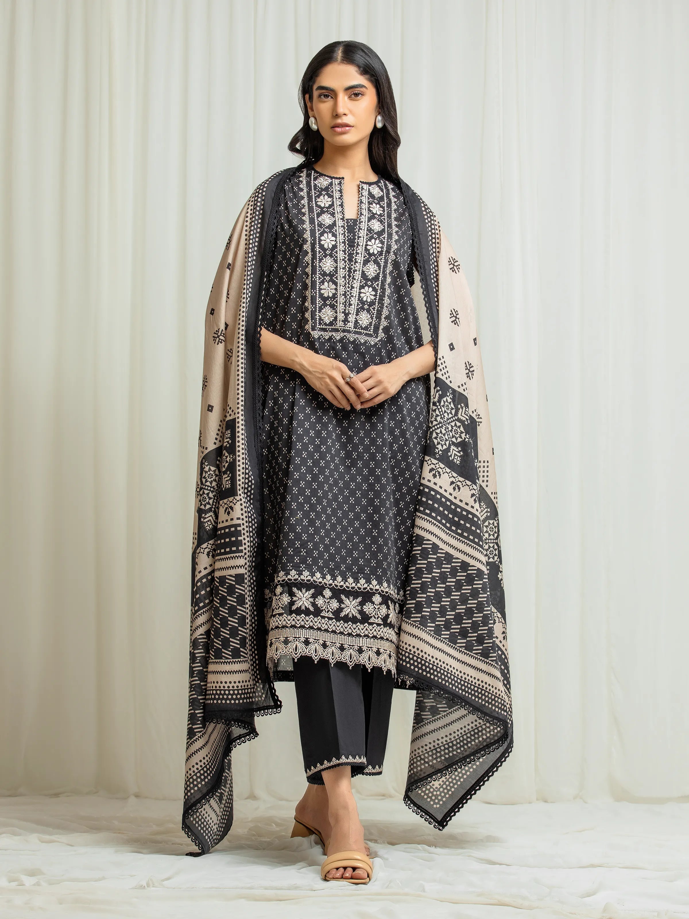 edenrobe Premium Embroidered Lawn Unstitched 3Pc Suit EWU6V1-33006