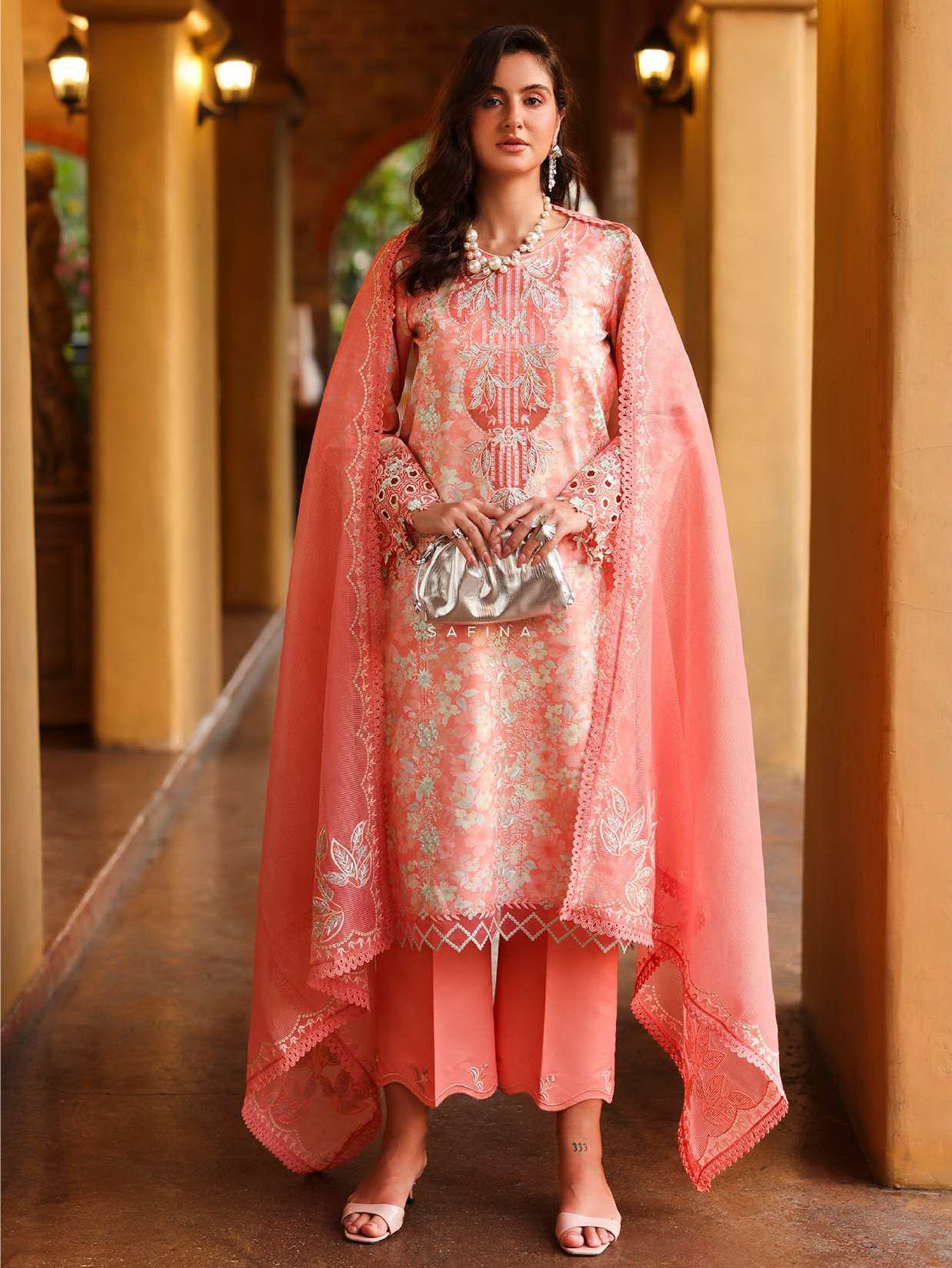 - Womens Unstitched 3Piece Premium Lawn Suit for Spring Summer
