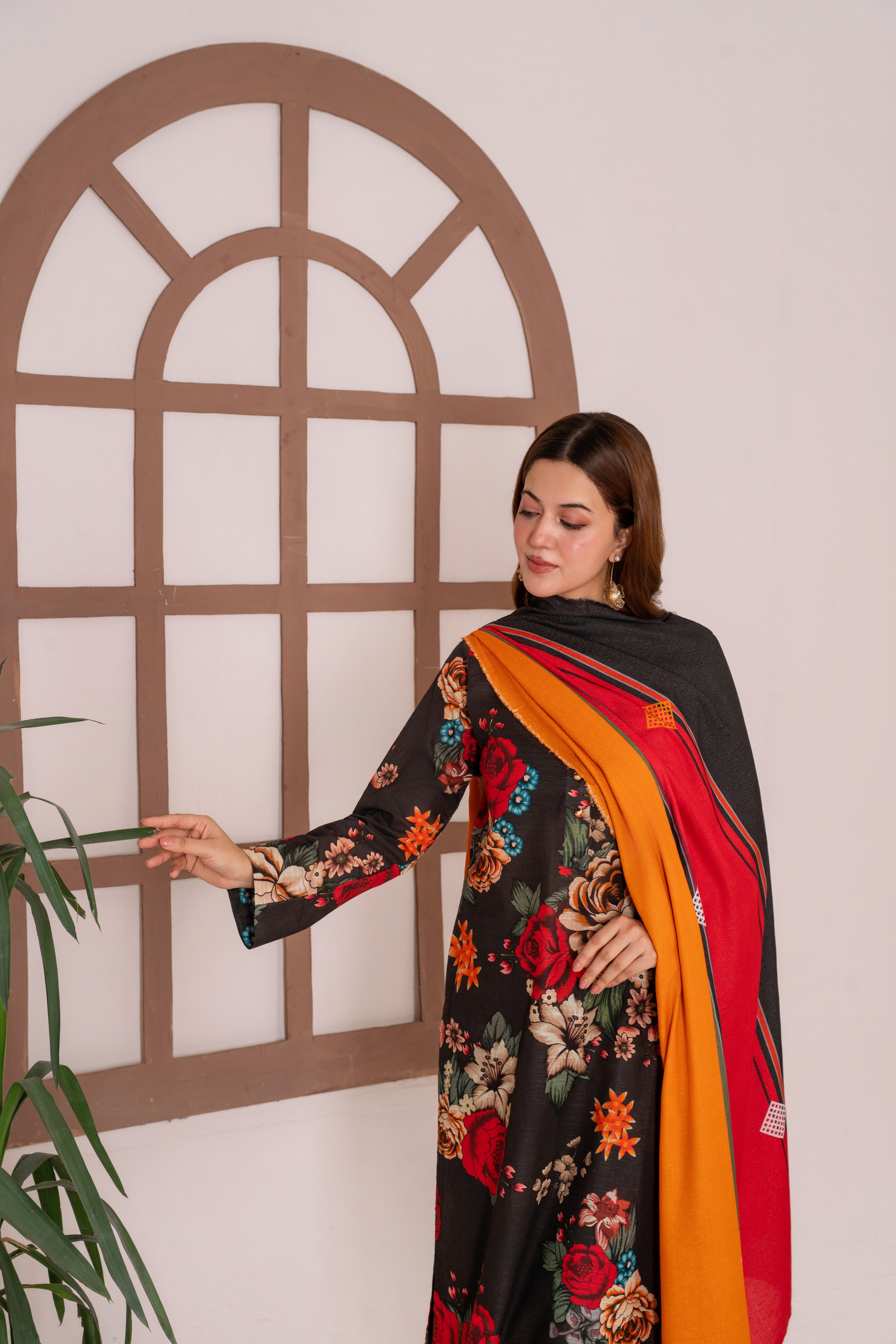 • Digitally Printed Karandi Shawl: 2.46 yards