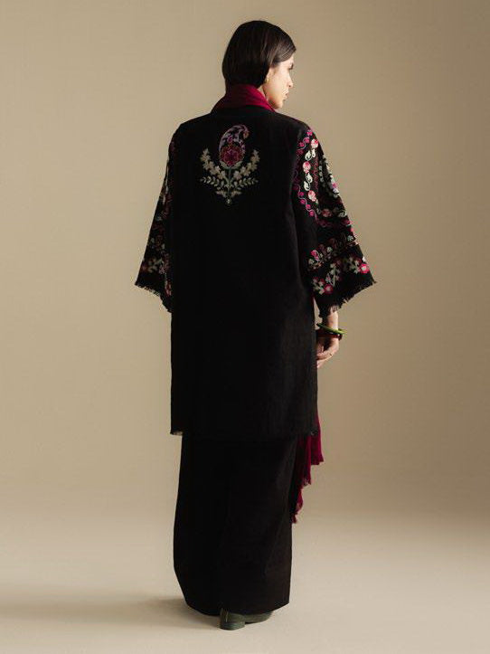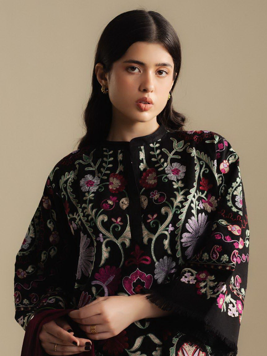 DESCRIPTION: A classic black khaddar shirt and trouser paired with a