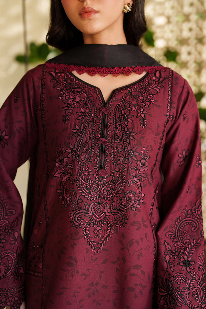 Farasha Meline Embroidered Viscose Unstitched 3Pc Suit - Sable Bloom