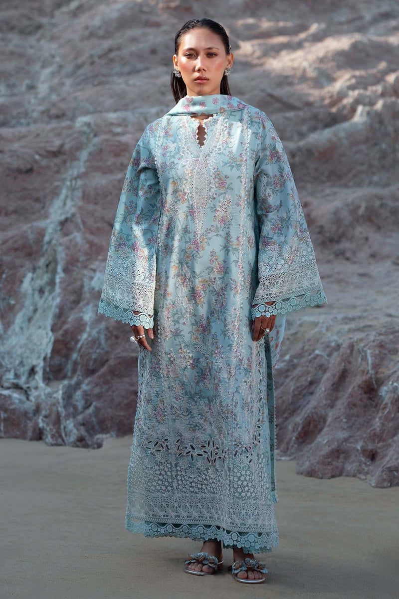 Afrozeh Summer Together Embroidered Lawn Unstitched 3Pc Suit - AQUAMARINE