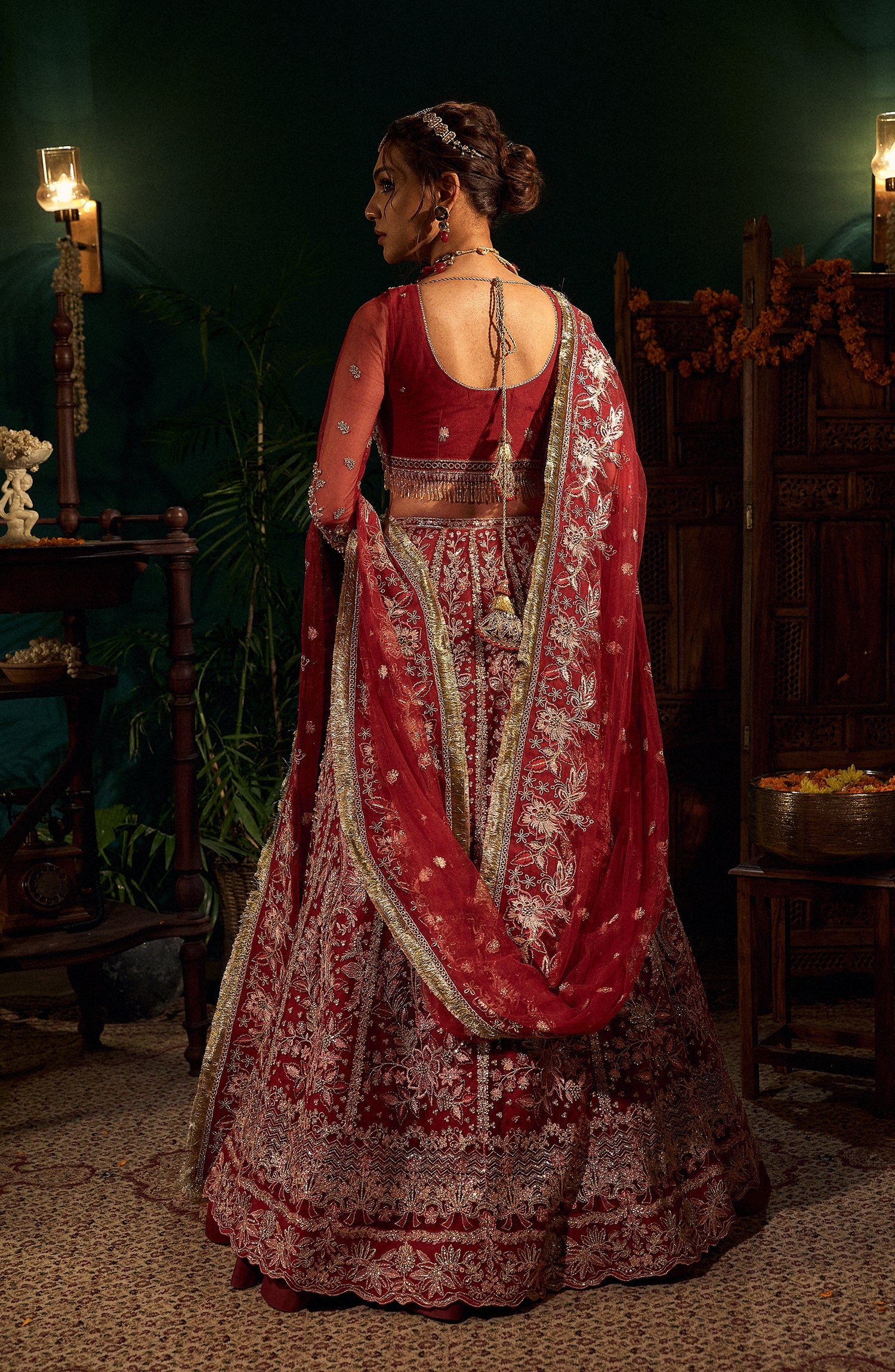 Fabiha Fatima Mehar-o-Maah Embroidered Net Unstitched 3Pc Suit - RUBY