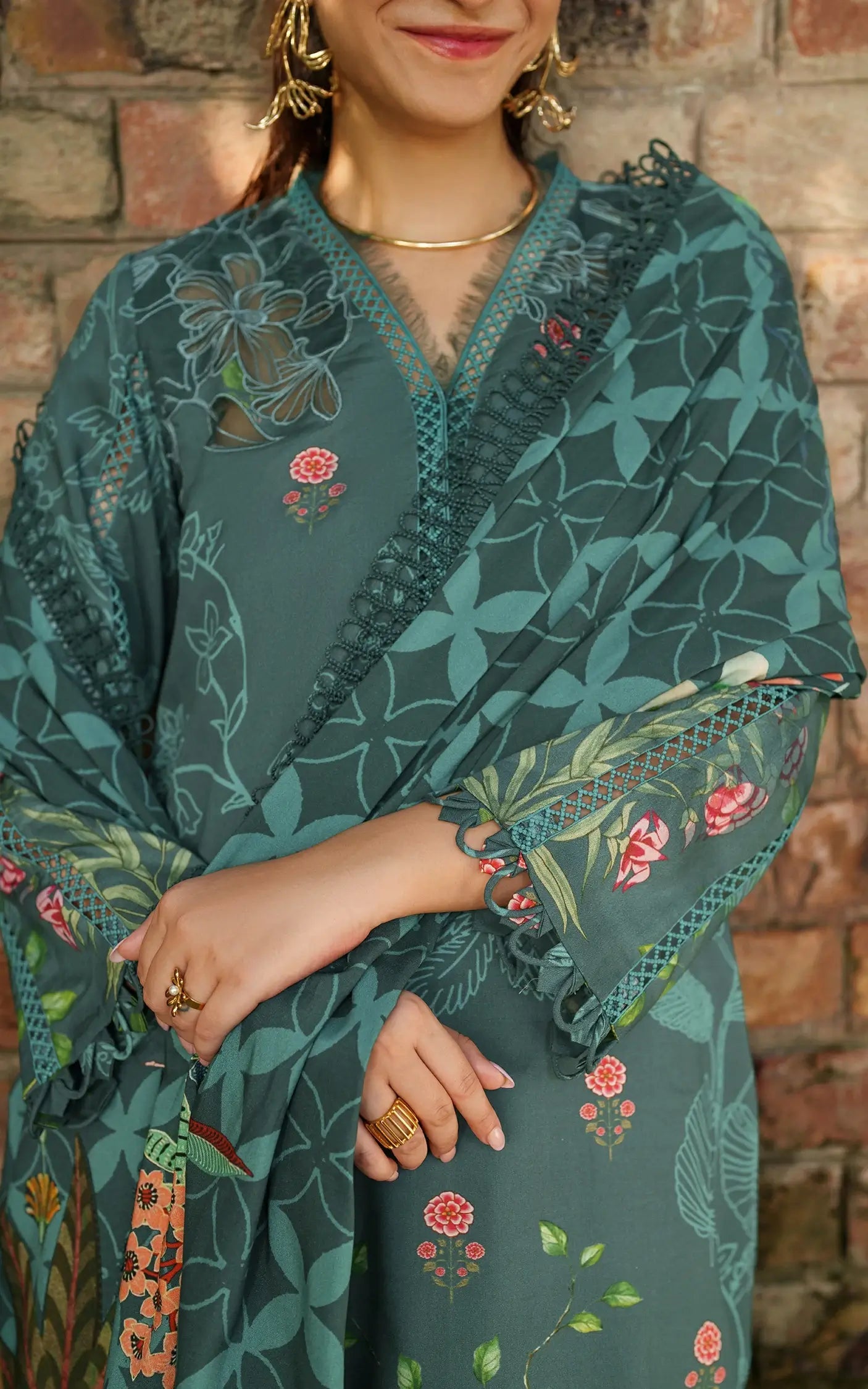 Asifa & Nabeel Meraki Embroidered Viscose Unstitched 3Pc Suit - Frosted Petals