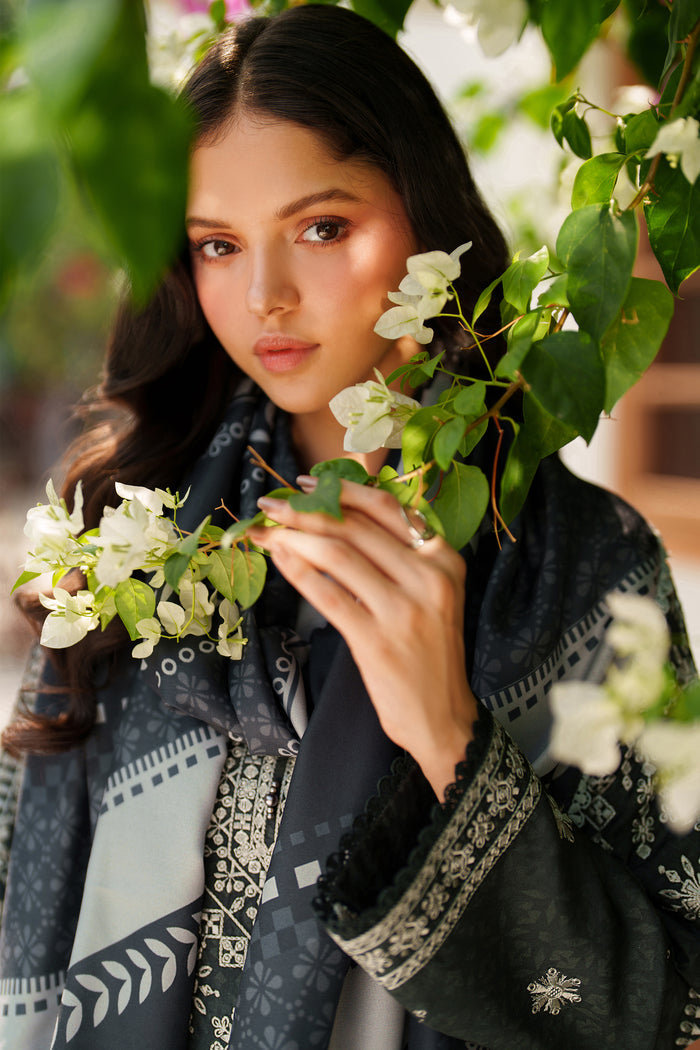 Farasha Meline Embroidered Viscose Unstitched 3Pc Suit - Slate Gray
