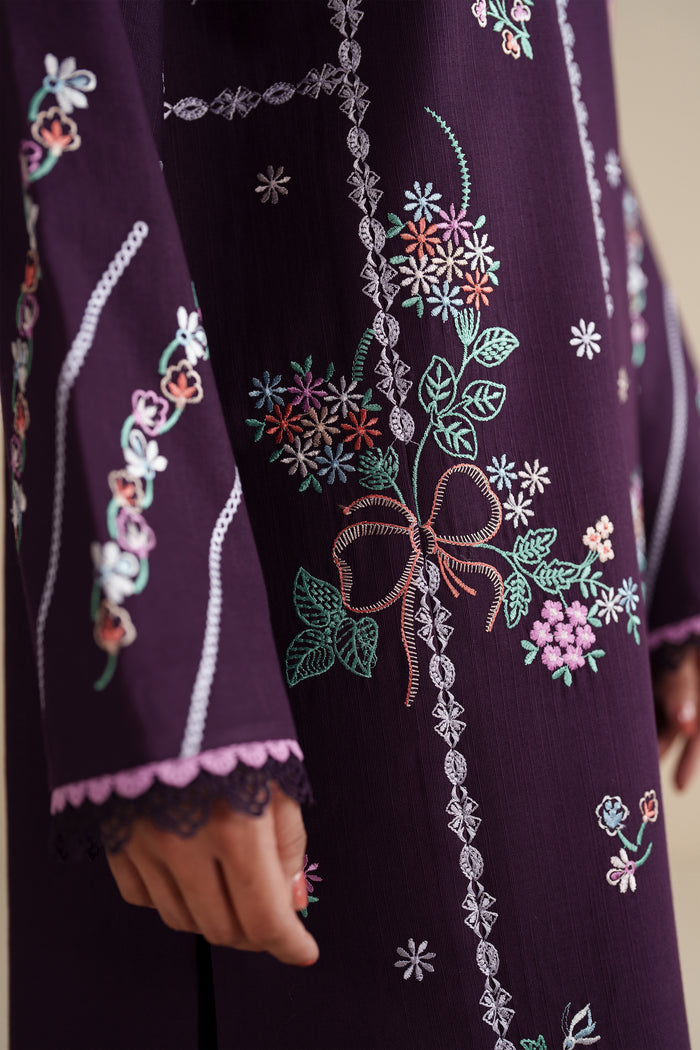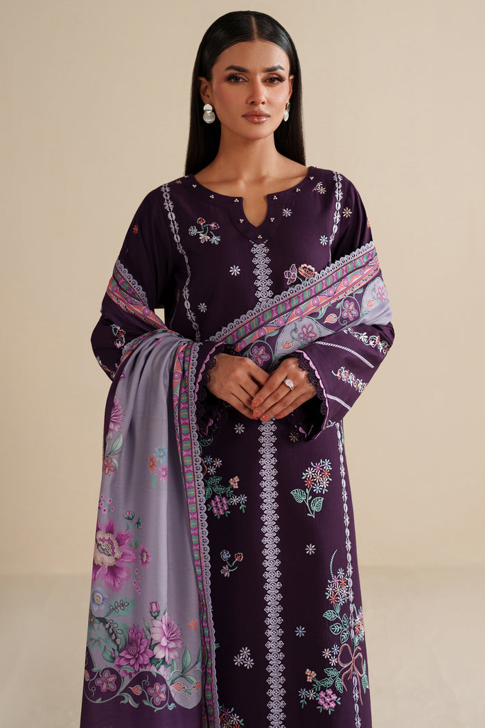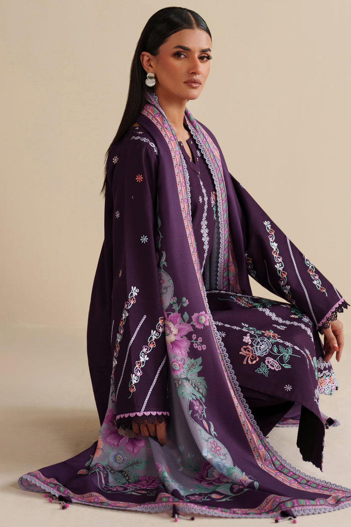 Farasha Winter Spell Embroidered Khaddar Unstitched 3Pc Suit - Plumella