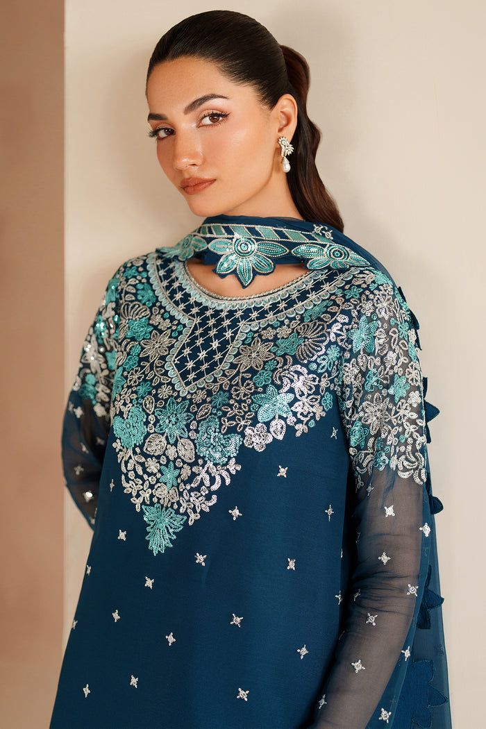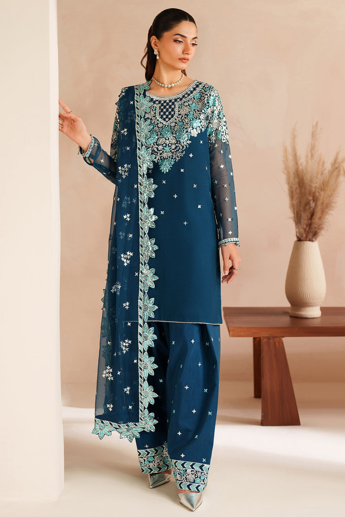 Farasha Luxury Embroidered Chiffon Unstitched 3Pc Suit - Cobalt Haze