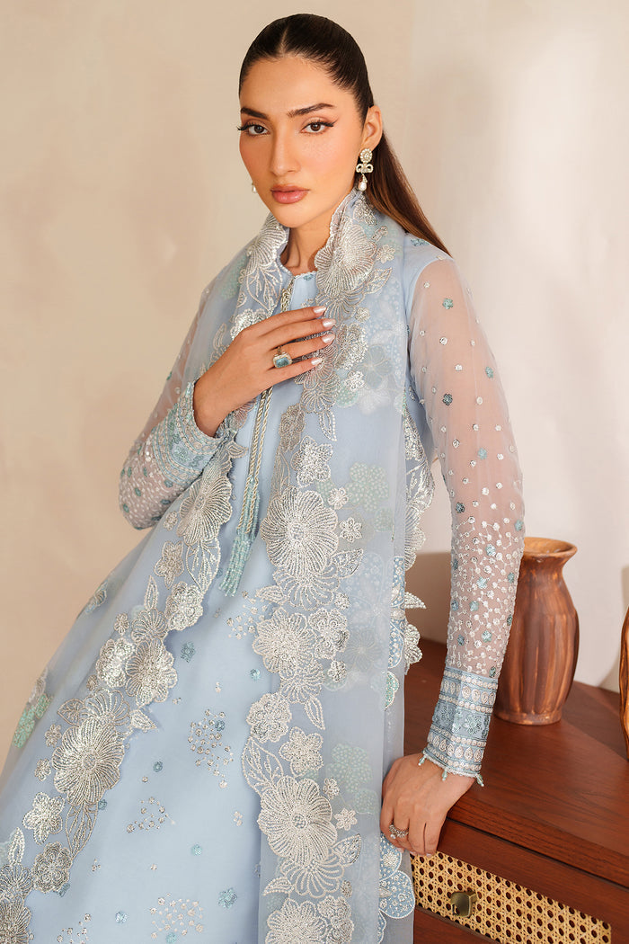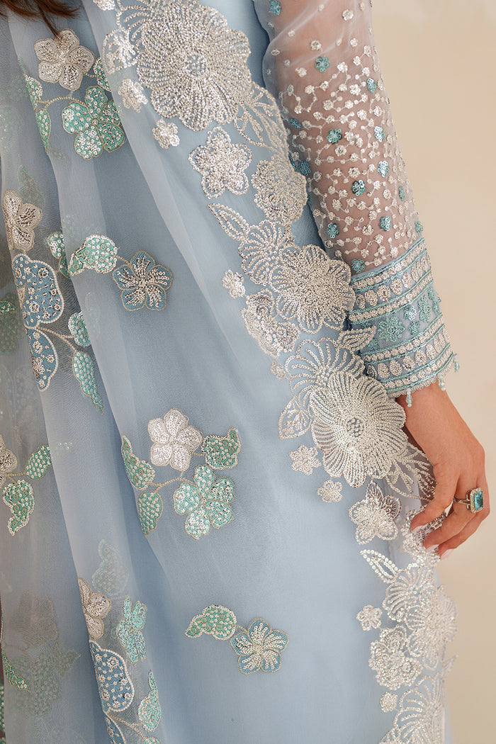 Farasha Luxury Embroidered Chiffon Unstitched 3Pc Suit - Frosted Mist