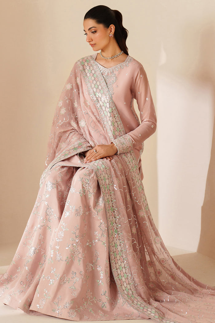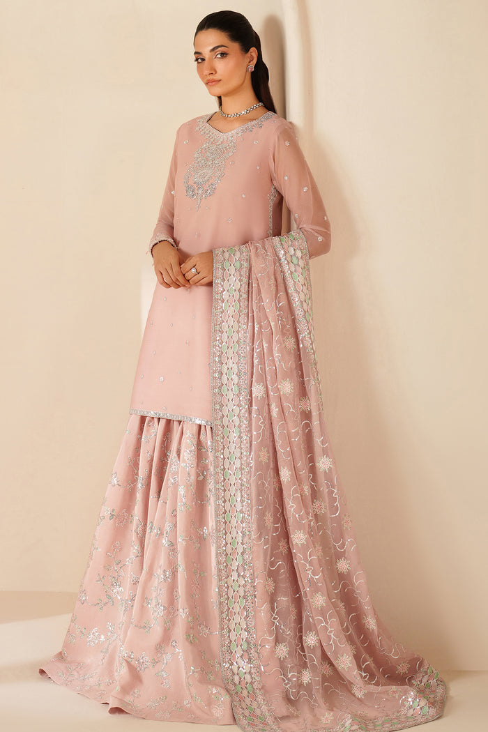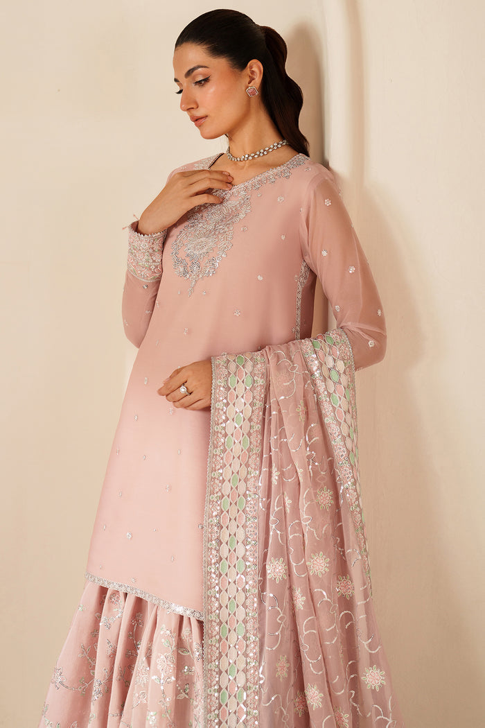 Farasha Luxury Embroidered Chiffon Unstitched 3Pc Suit - Serene Petal