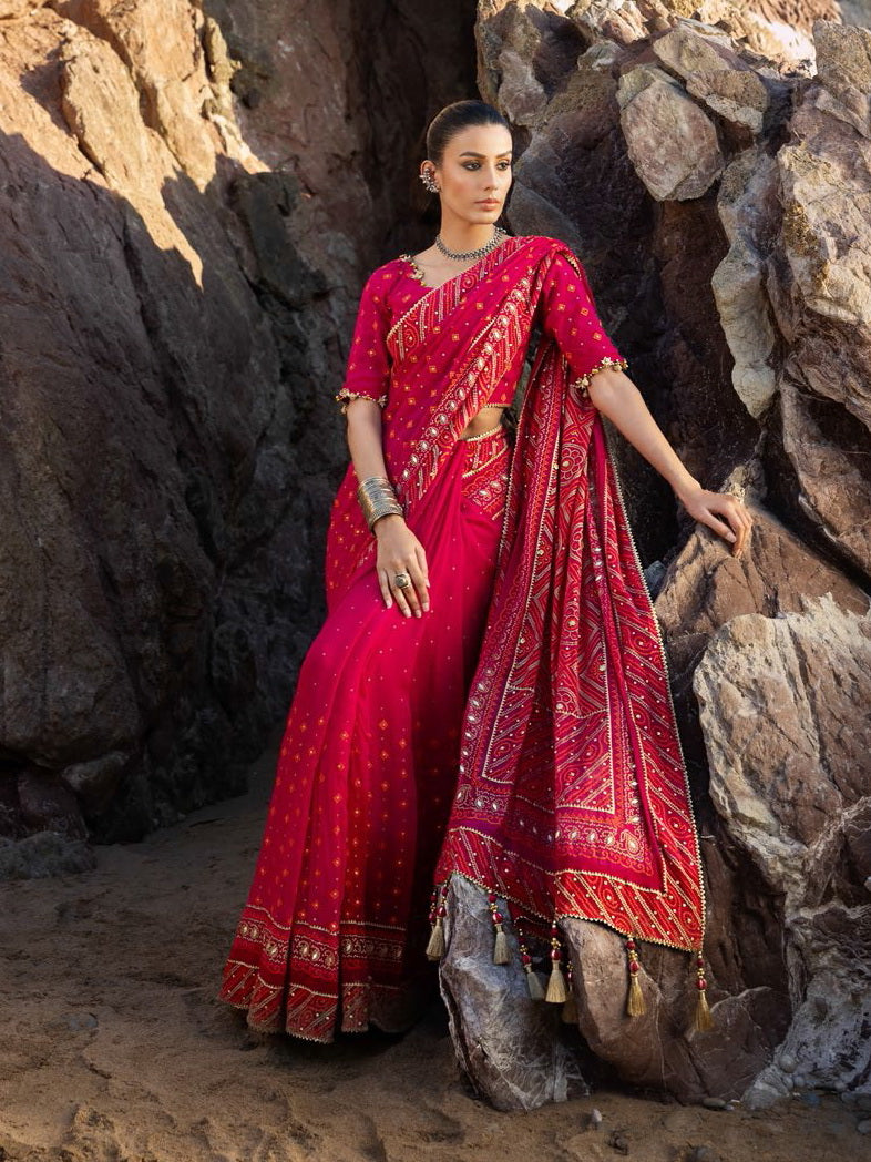 Gul Ahmed Chunri Embroidered Chiffon Unstitched 3Pc Saree PRS-52002A