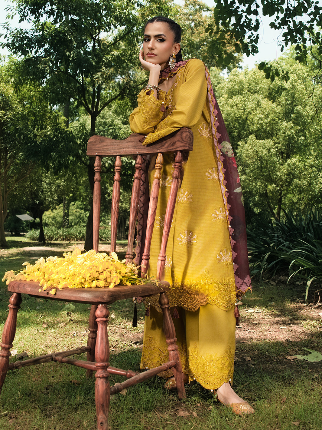 HemStitch The Garden Embroidered Lawn Unstitched 3Pc Suit - Matcha