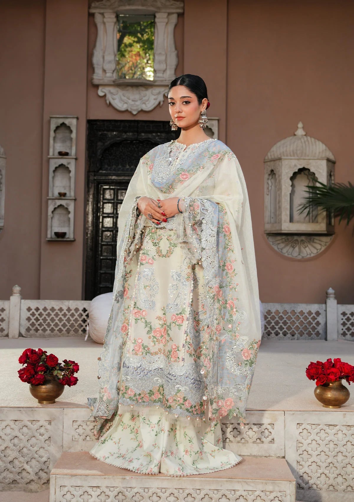 - Embroidered Organza Dupatta Pallu: 1 Pair