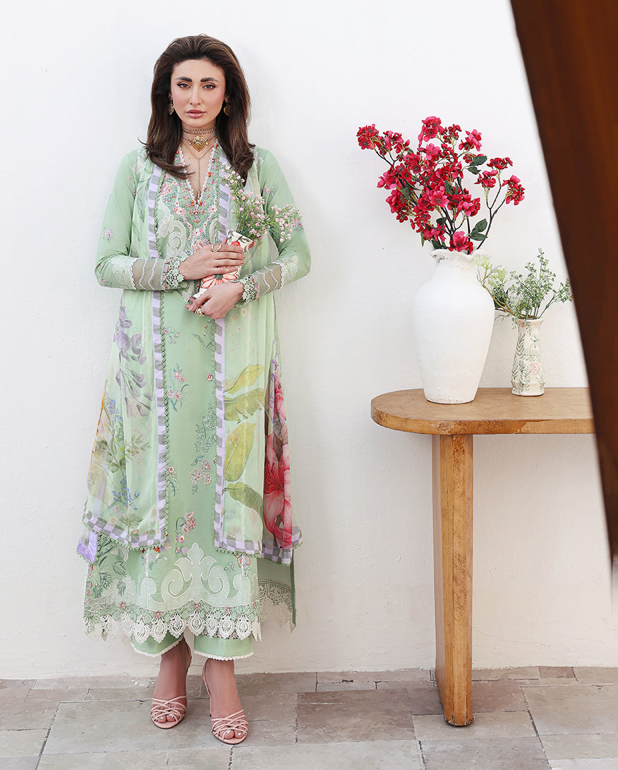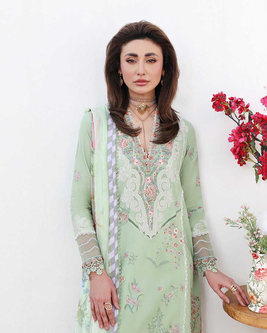 Roheenaz Floral Reverie Embroidered Lawn Unstitched 3Pc Suit - Daydream Gleam