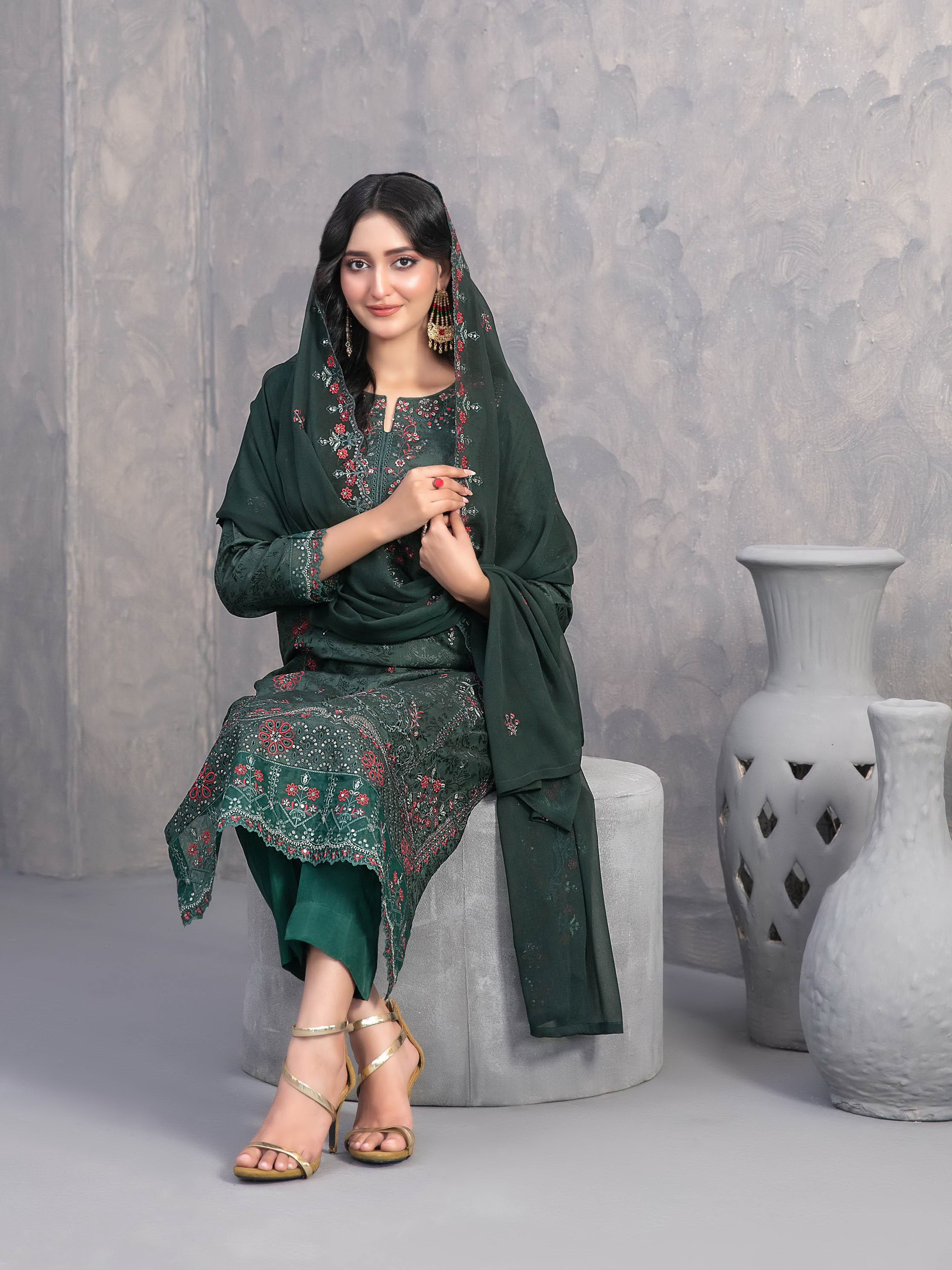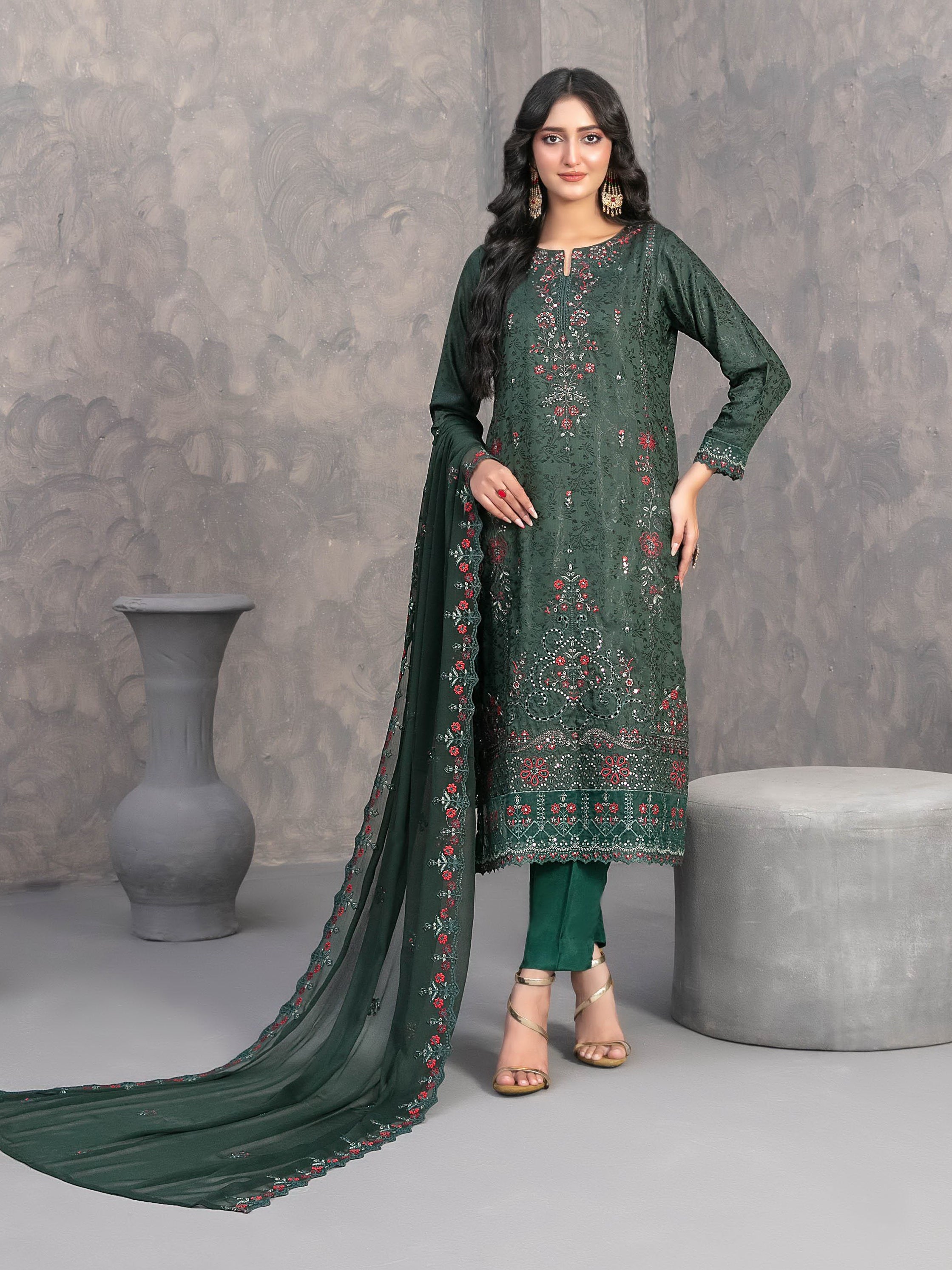 - Women's Un-Stitched Embroidered Viscose Jacquard 3Pc Suit
