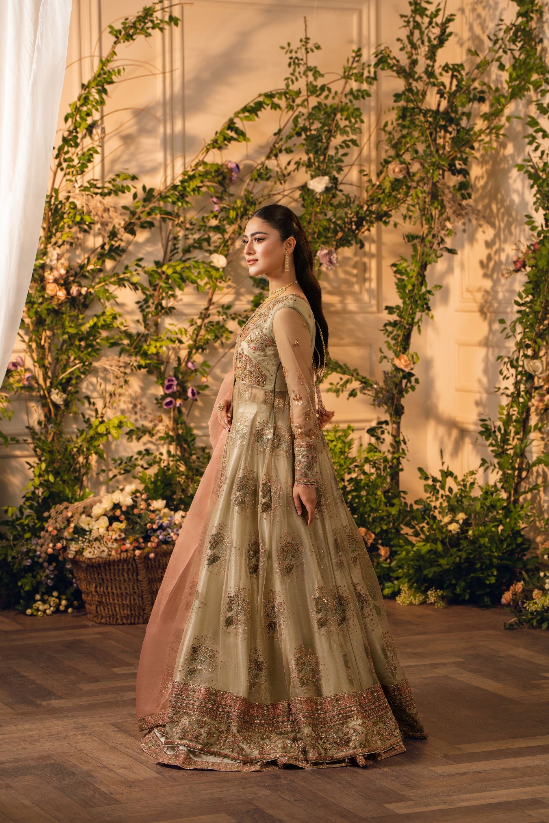 - Embroidered Organza Contrast Dupatta