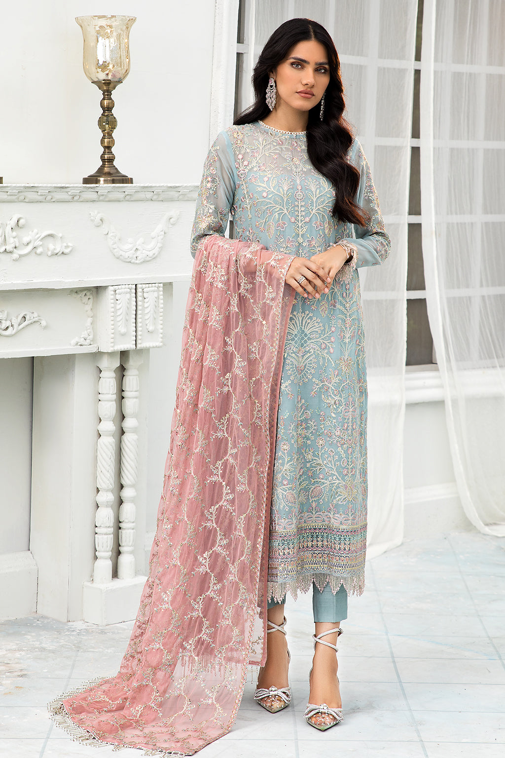 Zarif De Luxury Unstitched Formal 3Pc Chiffon Suit ZDL-04 BLUE MIST