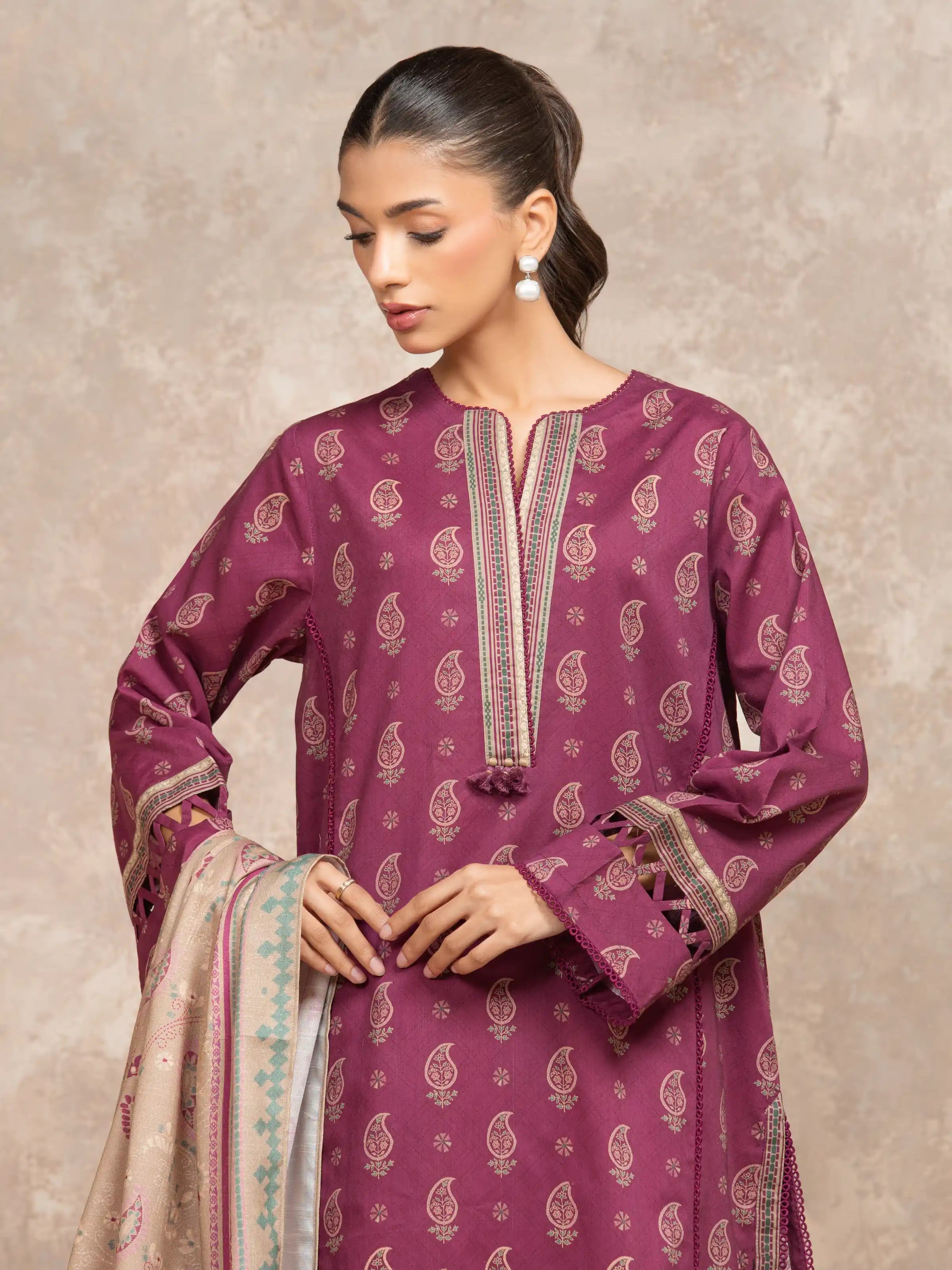 edenrobe Allure Unstitched Printed Khaddar 3Pc Suit EWU5M3-010