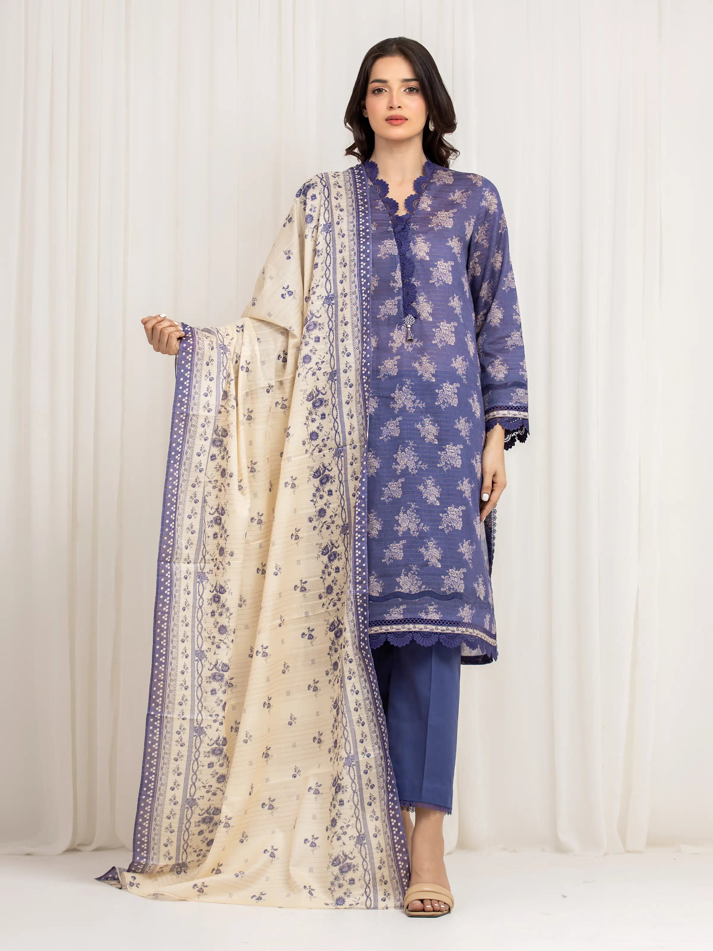edenrobe Merak Printed Zari Lawn Unstitched 3Pc Suit EWU6M6-001