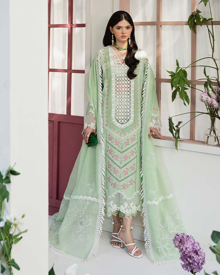 Zevk Flora Festive Embroidered Lawn Unstitched 3Pc Suit - ROSEMARY