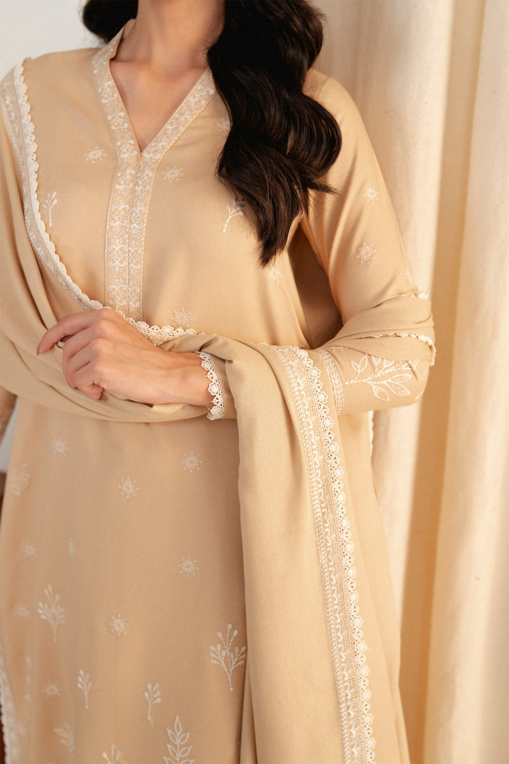 Neeshay Fall Pret Embroidered Karandi Stitched 3Pc Suit - Sand Whisper