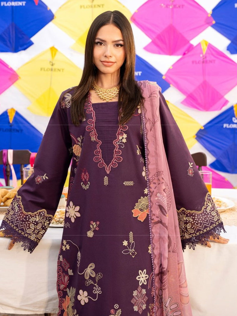 Florent Basant Chikankari Embroidered Lawn Unstitched 3Pc Suit FZ-1A