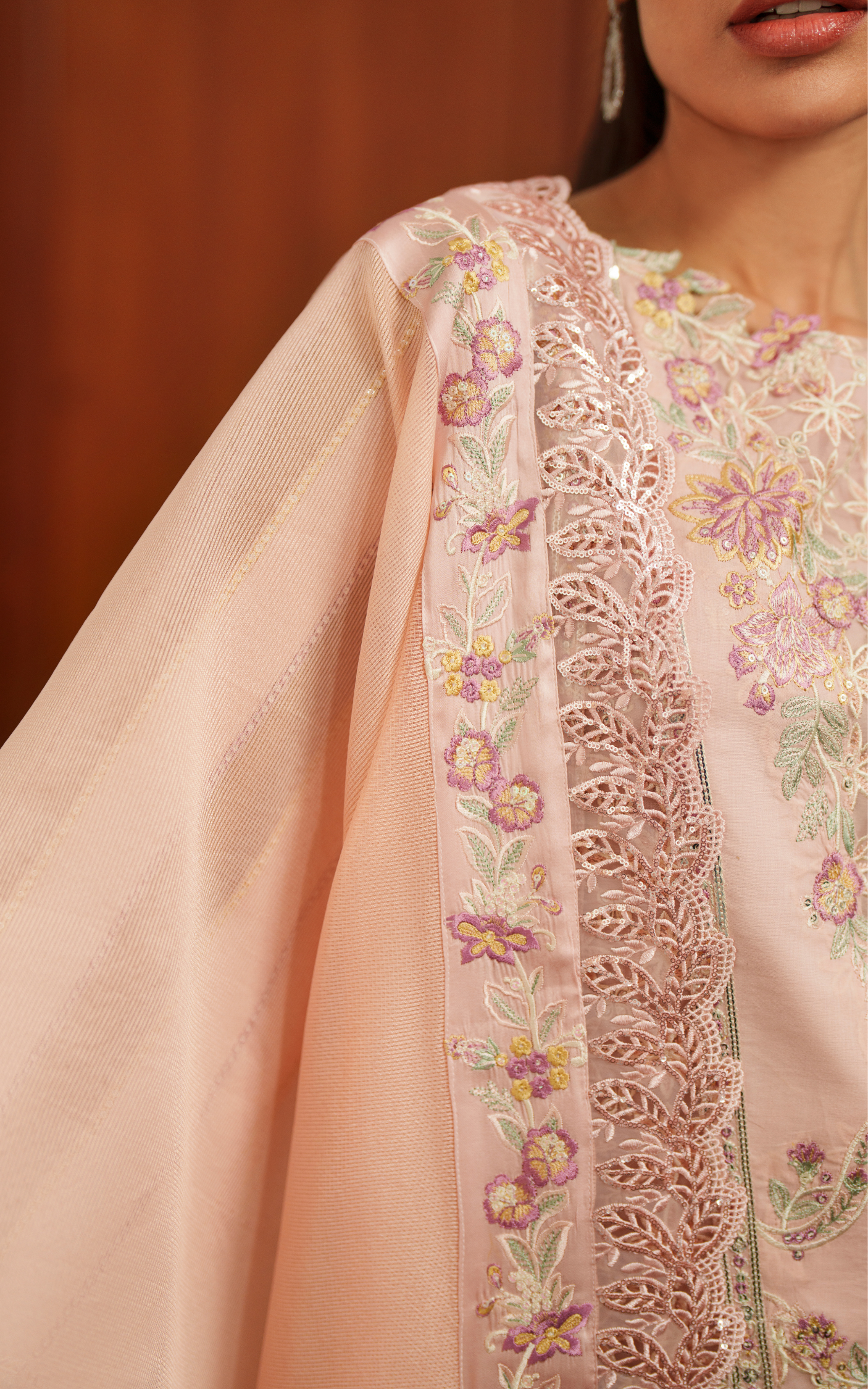 • Embroidered sequin sleeves on lawn.