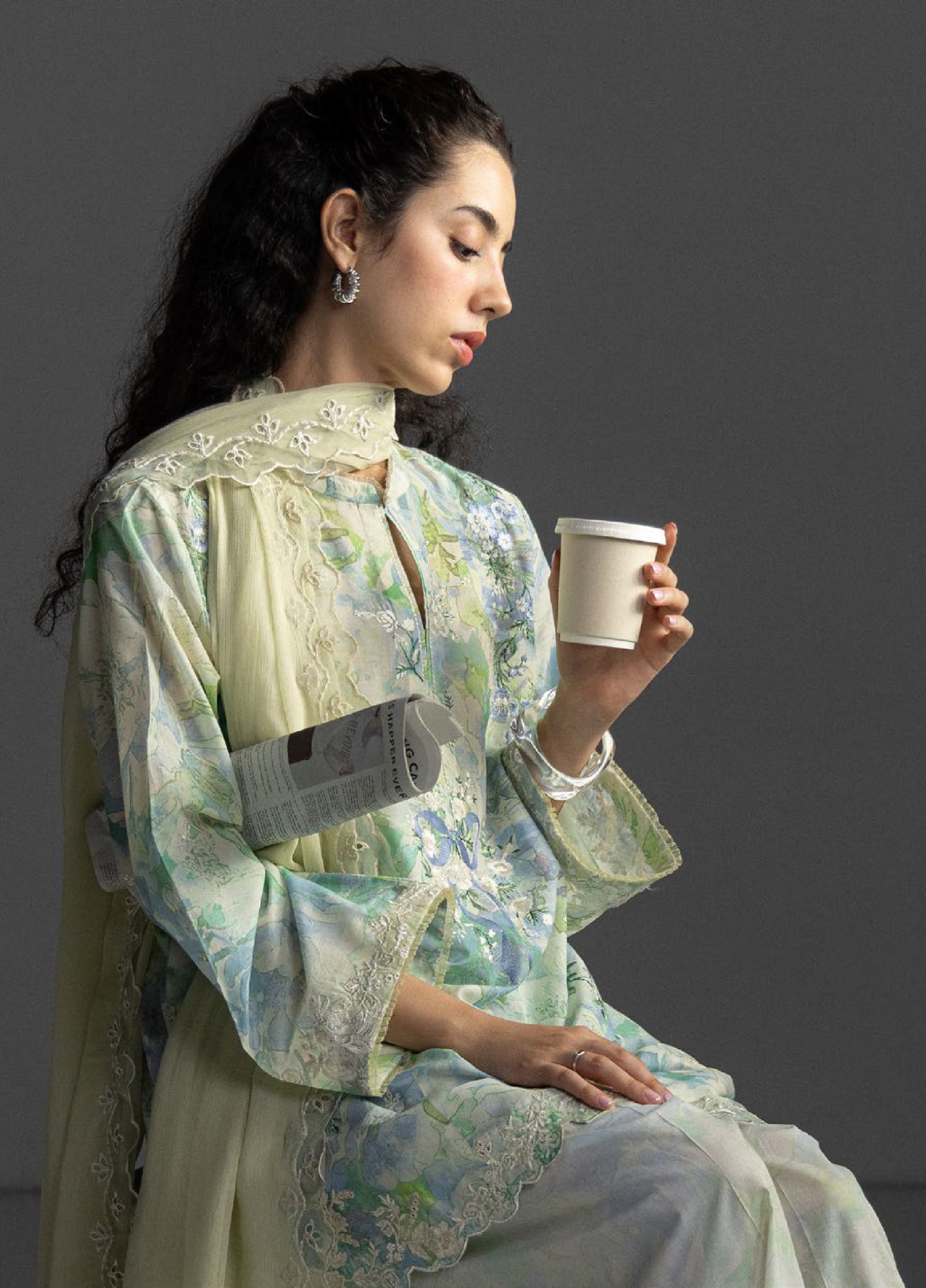 print and schiffli embroidery, paired with a printed trouser,