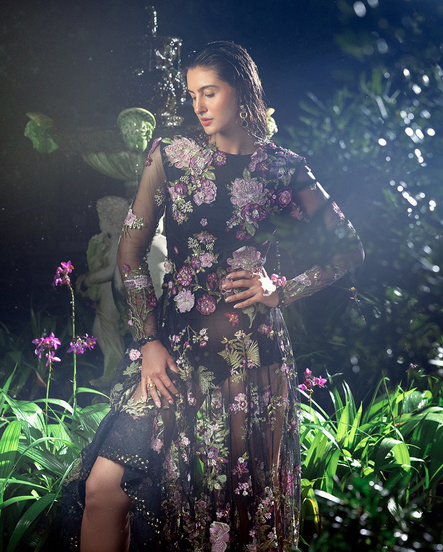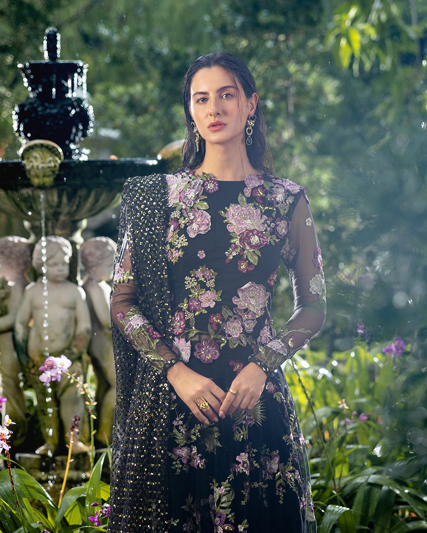 • Embroidered, Sequined Front & Back Panels (net) – 2