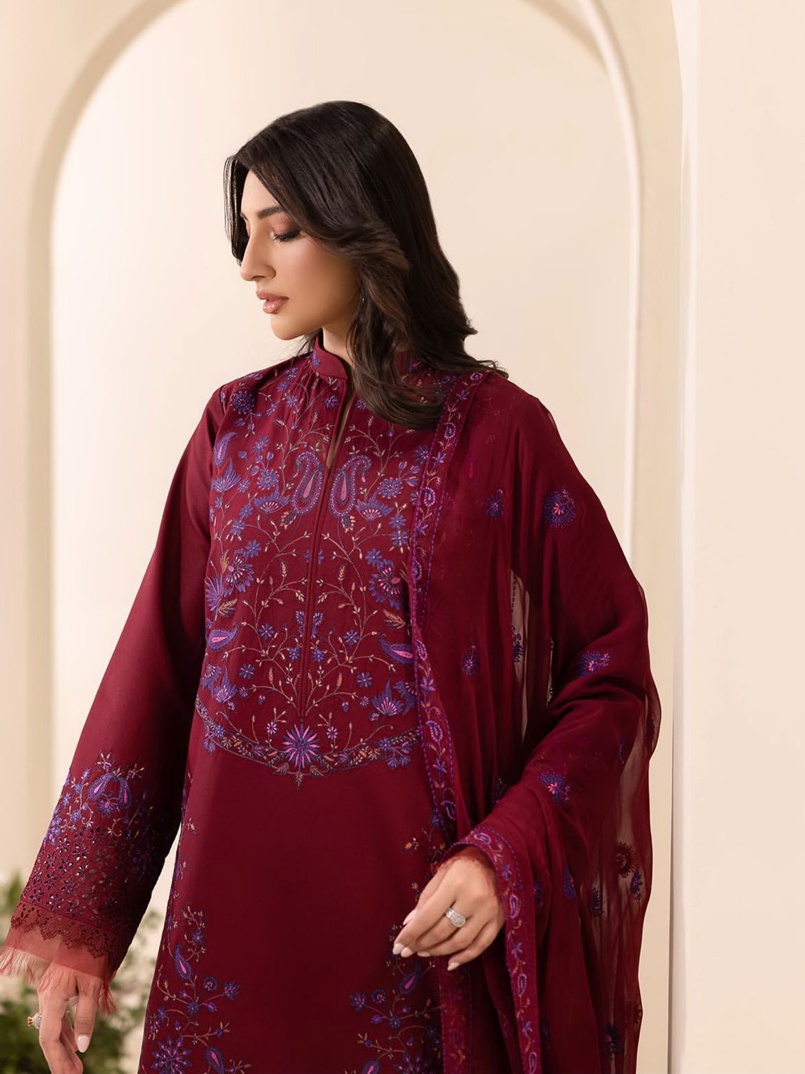 RajBari Premium Embroidered Lawn Unstitched 3Pc Suit D-08