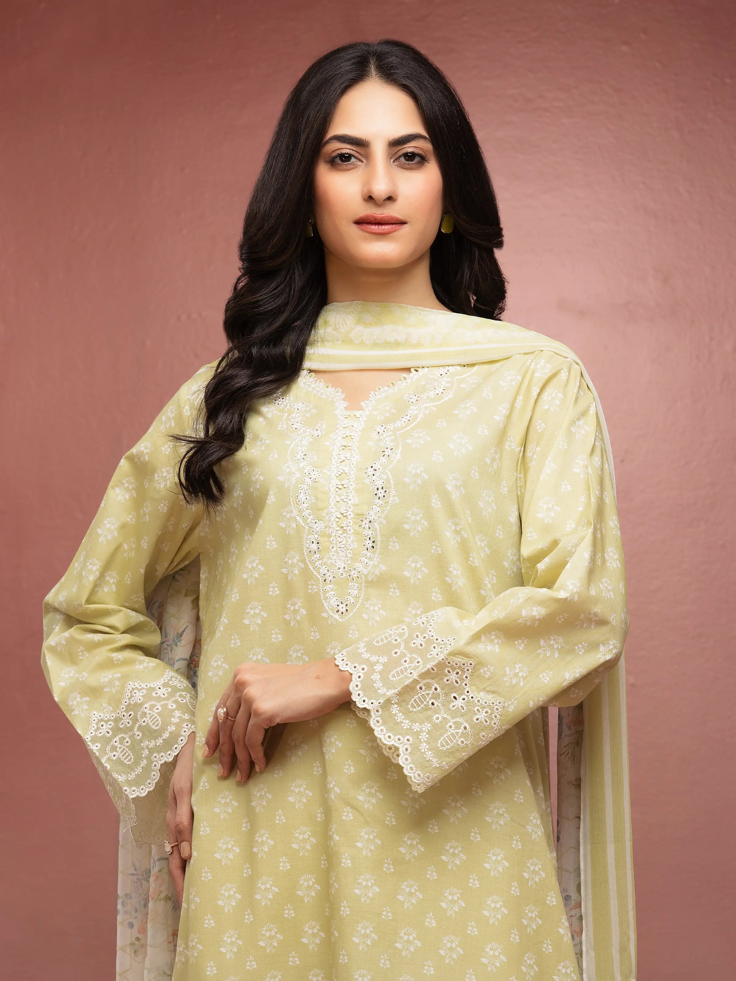 edenrobe Premium Embroidered Lawn Unstitched 3Pc Suit EWU5V1-31060