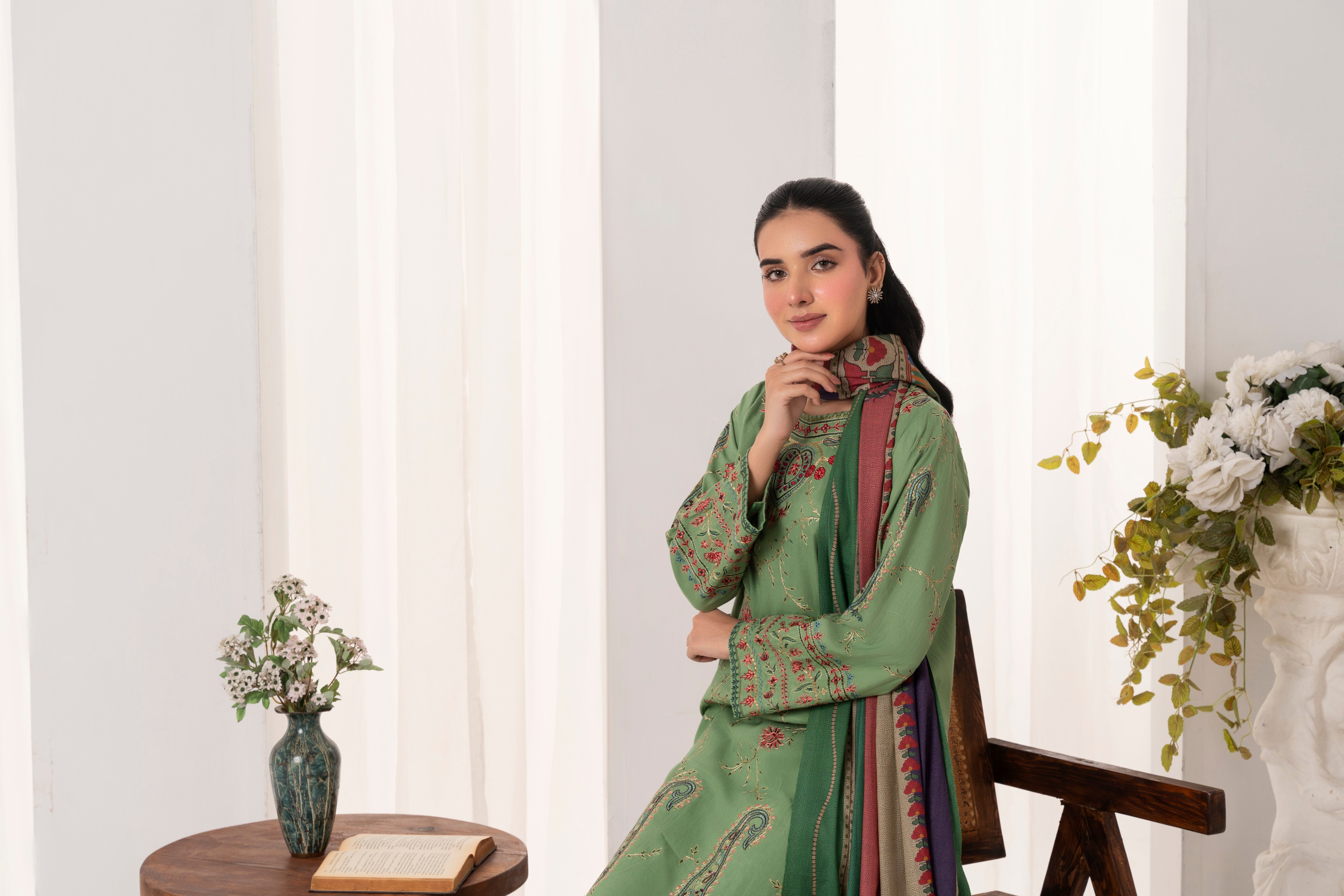 Feathers Fully Embroidered Dhanak Unstitched 3Pc Suit FROSTEN-FT546
