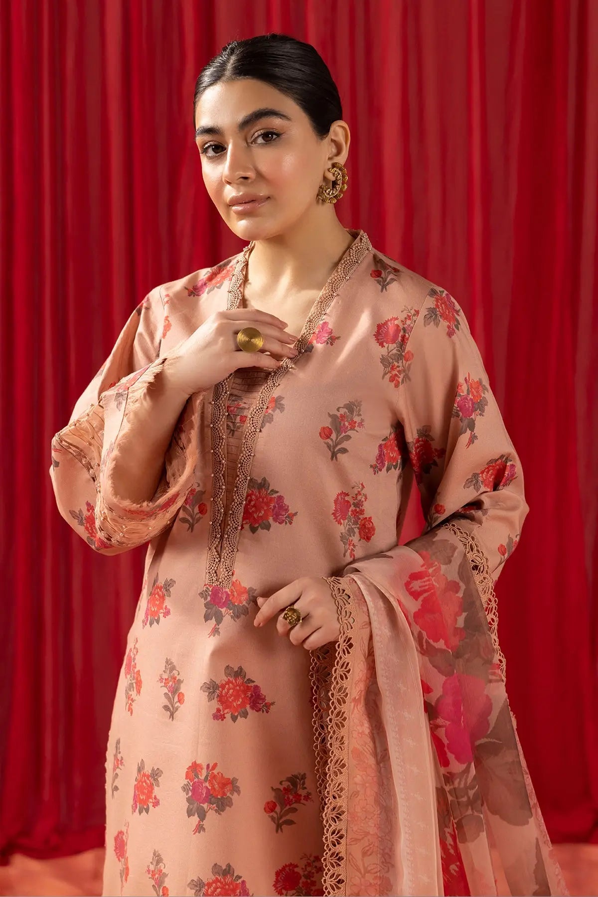 Sheen by Alizeh Fashion Printed Lawn Unstitched 3Pc Suit - CORAL PEACH