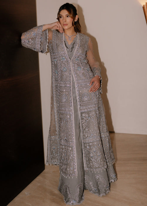 Sadaf Fawad Khan Siraa Embroidered Net Unstitched 3Pc Suit - Overcast Whisper