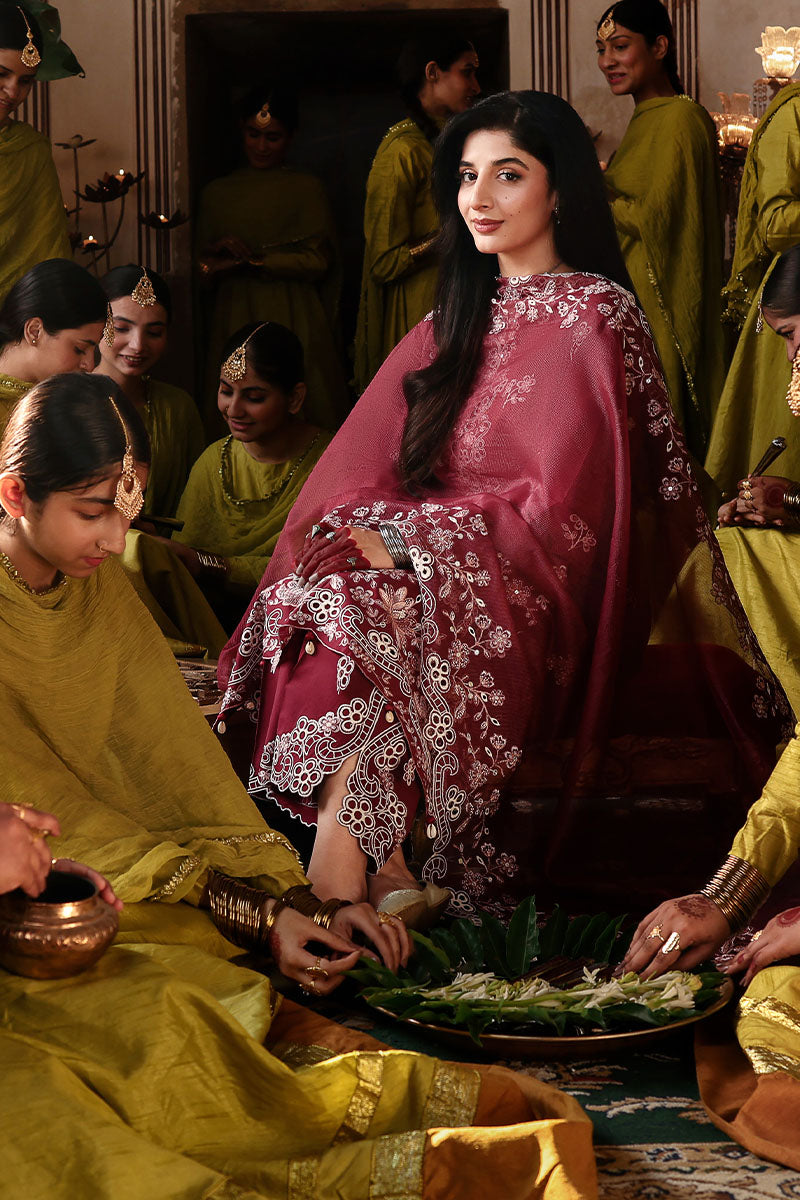 Cross Stitch Premium Embroidered Lawn Unstitched 3Pc Suit D-01 CRIMSON DRAPE