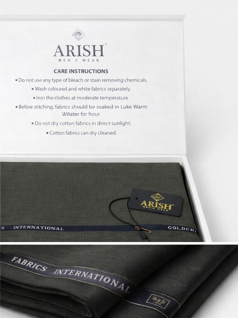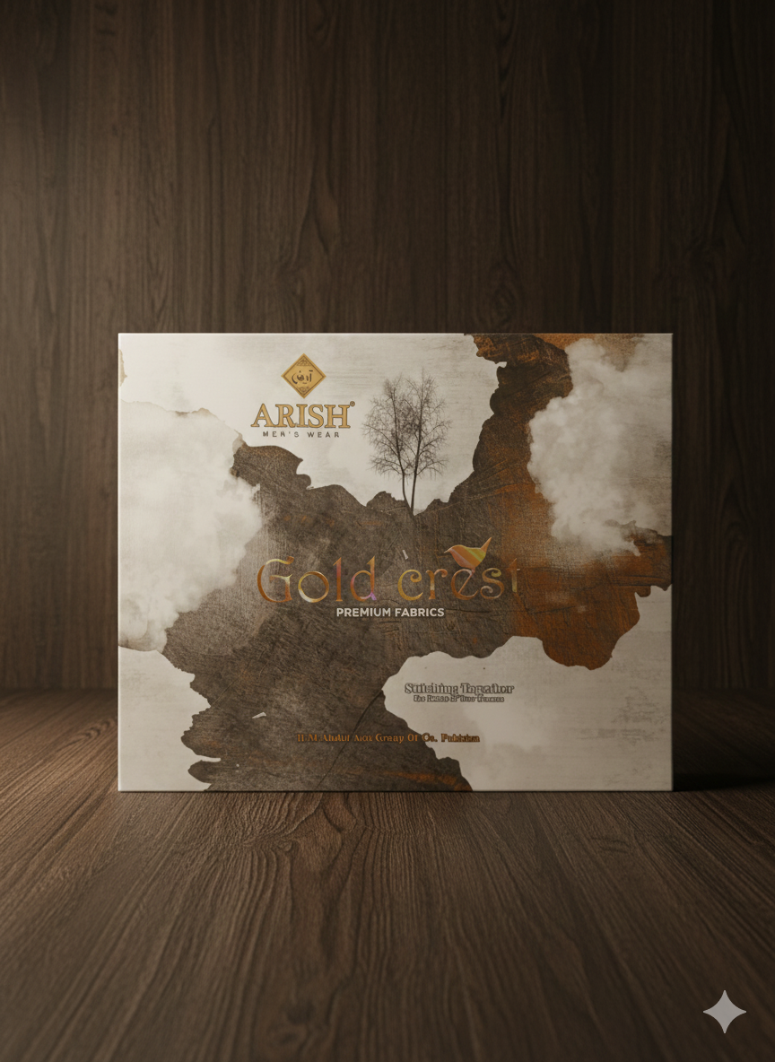 • DESCRIPTION: Arish Gold Crest Collection offers premium men’s K wash & wear fabric with superior quality, easy maintenance, lasting color, and elegant style.
