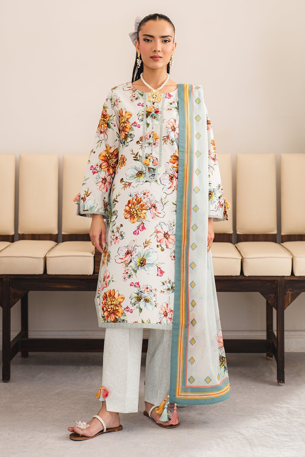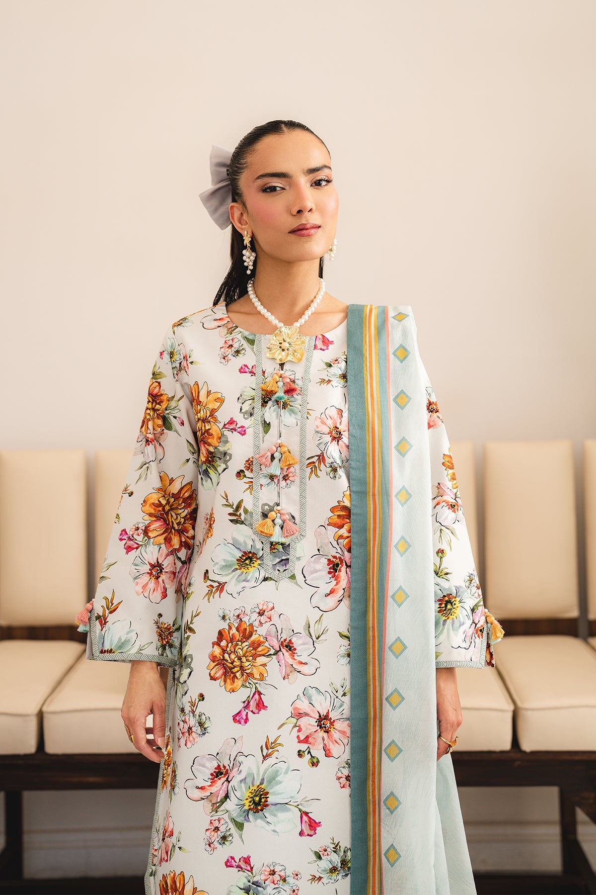 • DESCRIPTION: Let your style shine in "Celan." This digitally printed white shirt, featuring vibrant floral prints in contrasting tones, is paired with matching printed lawn trousers. The look is further elevated with a printed voile dupatta, adding an extra touch of sophistication.
