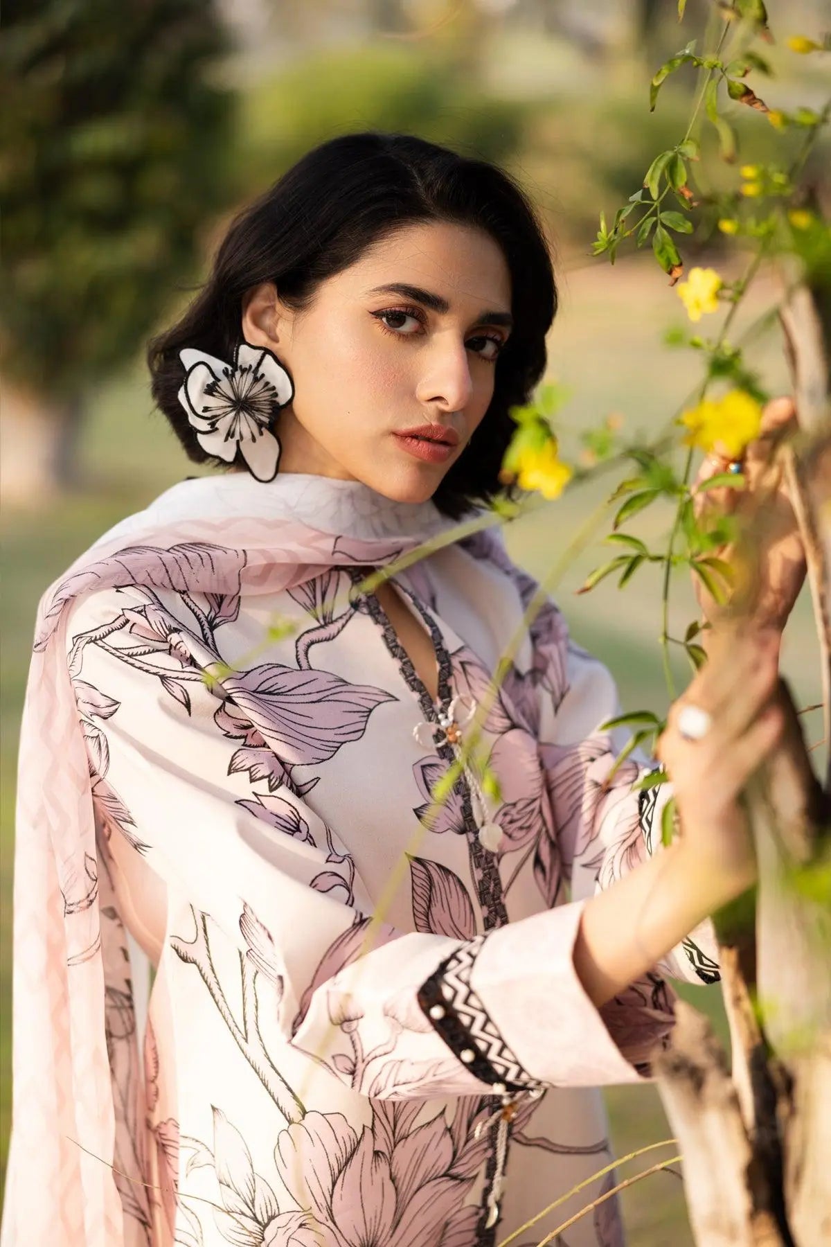 • DESCRIPTION: Lilac Bloom – "Rafaello" Soft yet bold, this white and lilac ensemble celebrates florals, with a chiffon digital printed dupatta that adds a sheer touch of sophistication. The digital printed shirt and trousers create a seamless, elegant look.