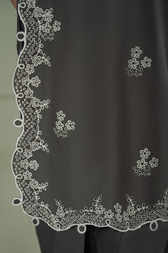 • DESCRIPTION: As an expert in the fashion industry, I recommend the FLORAL ASH 2PC EMBROIDERED LAWN SUIT. The lawn embroidered shirt features intricate embroidery on the front, back, and sleeves, along with a beautifully crafted neckline and patches. The lawn embroidered dupatta adds a touch of elegance, while the cambric dyed trouser completes the look.