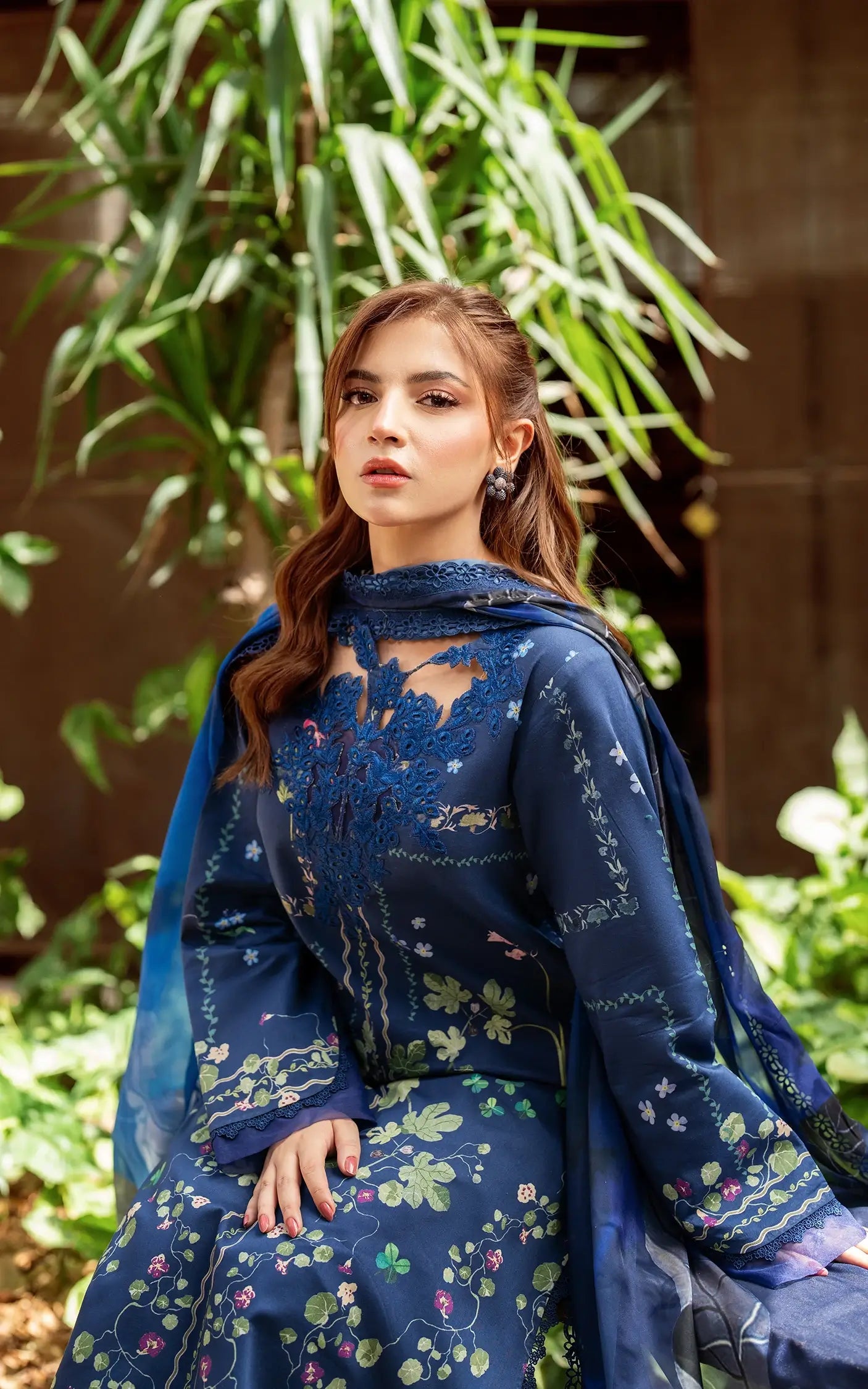 Asifa & Nabeel Yakin Unstitched Lawn 3Pc Suit YKL25-08 Moonlit Garden