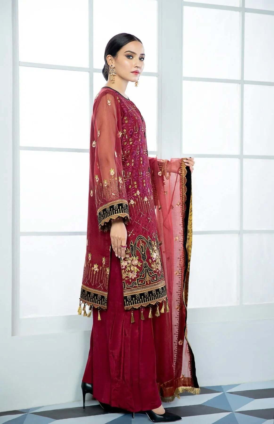 Alizeh Dua Embroidered Organza Unstitched 3Pc Suit AF-CH-2025-Surkh