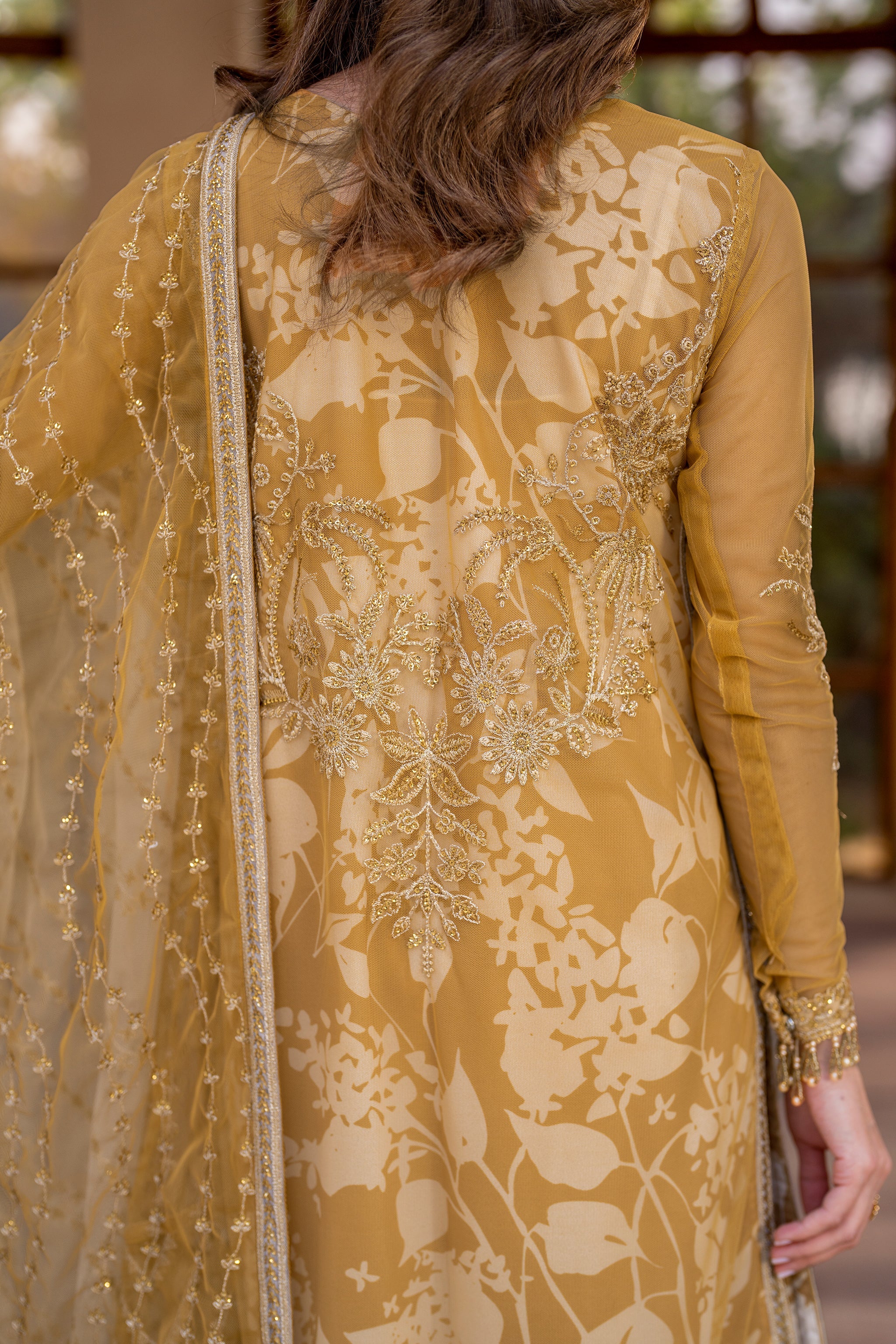 Zarif Iris Sequins Embroidered Net Unstitched 3Pc Suit ZRI-03 MARIGOLD
